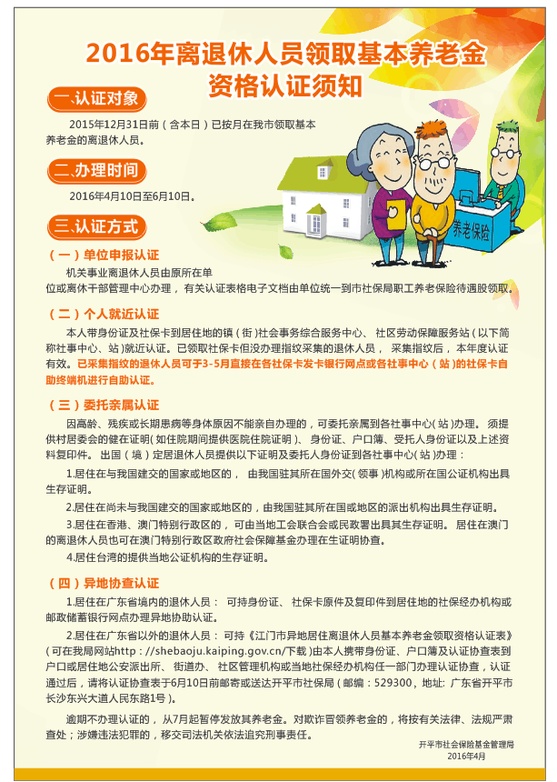 2016年離退休人員領取基本養(yǎng)老金資格認證須知