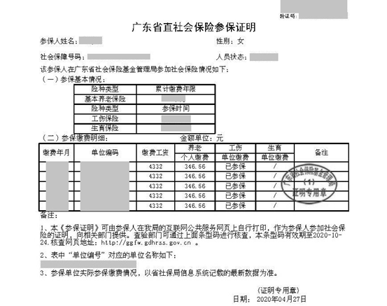 ▲注:使用黑白打印機打印的參保證明公章為黑色,不影響證明效力。
