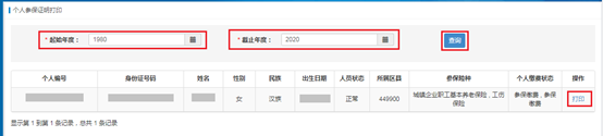 1.打開廣東省人力資源和社會保障廳-廣東社會服務(網(wǎng)址:http://hrss.gd.gov.cn/gdsbfw/),點擊【社會保險網(wǎng)上個人服務】,使用個人賬號登錄后進入系統(tǒng)。 2.在左側(cè)菜單欄找到【社會保險參保繳費記錄查詢】,點擊下方【個人權(quán)益記錄(參保證明)查詢打印】即可看到選項。 3.進入【廣東省直社會保險參保證明(個人)】參保證明打印頁面,選擇起始年度和截止年度點擊查詢,選擇對應的記錄點擊【打印】,可打印個人參保證明。 4.個人參保證明參考圖如下: