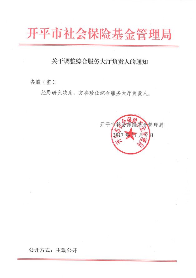 關(guān)于調(diào)整綜合服務(wù)大廳負責人的通知