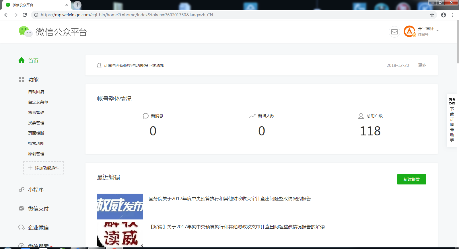 “開(kāi)平審計(jì)”微信公眾號(hào)共發(fā)布微信47條。