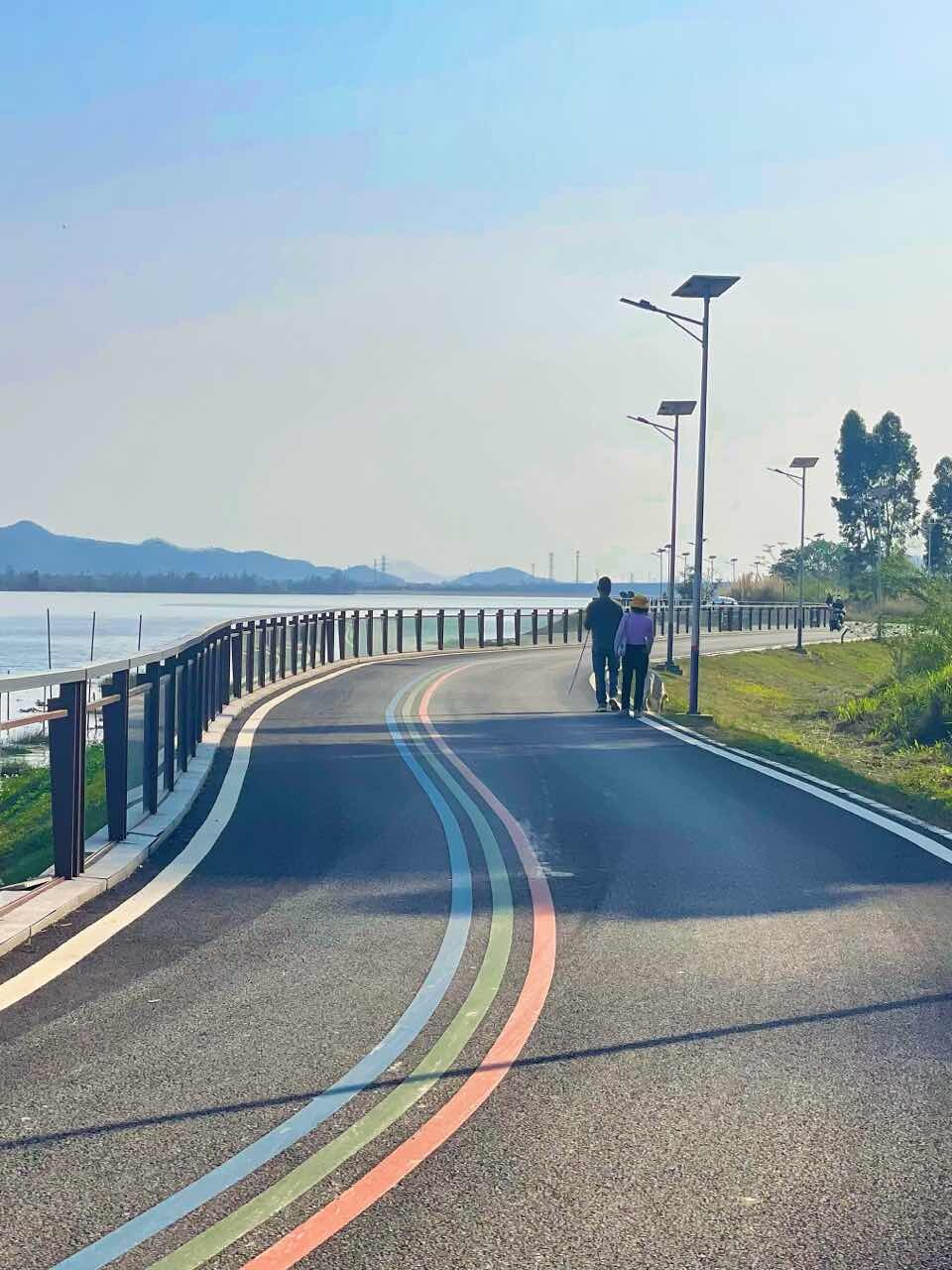 潭江水口段碧道位于開平市水口鎮(zhèn),碧道起點(diǎn)為金山大橋,終點(diǎn)為新村與聚龍兩村交界,碧道長12.8公里,沿線以鄉(xiāng)村景觀為主,屬于鄉(xiāng)野型碧道。