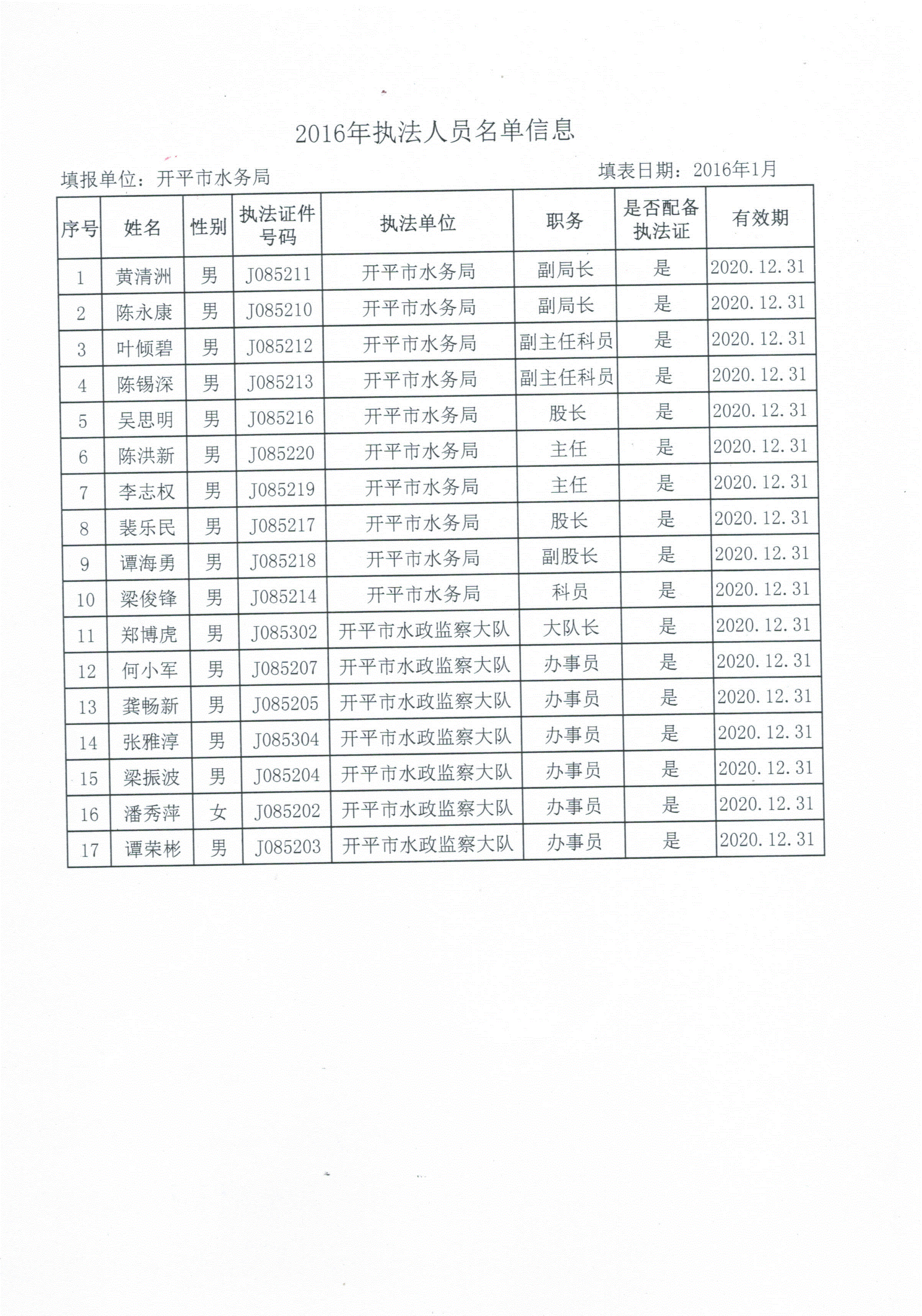 【“五公開”-管理公開】2016年執(zhí)法人員名單信息
