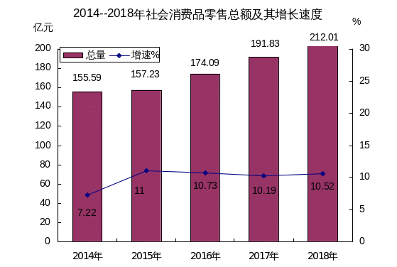 二、農(nóng)業(yè) 全年實(shí)現(xiàn)農(nóng)業(yè)總產(chǎn)值61.45億元,比上年增長(zhǎng)6.32%。全年糧食作物播種面積63.17萬(wàn)畝,比上年下降1.17%。其中:水稻種植面積58.7萬(wàn)畝,比上年下降4.68%。 全年糧食總產(chǎn)量(折糧)21.13萬(wàn)噸,比上年下降2.32%,其中:稻谷20.03萬(wàn)噸,比上年下降5.43%。 圖2: 全市更新造林面積7.8萬(wàn)畝,比上年增長(zhǎng)63.87%;木材砍伐20.64萬(wàn)立方米,比上年增長(zhǎng)14.22%。 畜牧業(yè)肉類總產(chǎn)量11.39萬(wàn)噸,比上年增長(zhǎng)35.60%;全年生豬出欄量57.56萬(wàn)頭,比上年下降13.92%;家禽出欄量3122.3萬(wàn)只,比上年增長(zhǎng)14.32%;禽蛋全年總產(chǎn)量1.11萬(wàn)噸,比上年增長(zhǎng)35.37%;水產(chǎn)品產(chǎn)量5.04萬(wàn)噸,比上年下降6.15%。 三、工業(yè)和建筑業(yè) 2018年,全市規(guī)模以上工業(yè)企業(yè)291家,規(guī)模以上工業(yè)增加值比上年增長(zhǎng)10.50%,工業(yè)總產(chǎn)值比上年增長(zhǎng)13.57%。工業(yè)總產(chǎn)值中,按輕重工分:輕工業(yè)增長(zhǎng)9.23%,重工業(yè)增長(zhǎng)20.27%;按企業(yè)經(jīng)濟(jì)類型分:外商及港澳臺(tái)商投資企業(yè)增長(zhǎng)11.48%,股份制企業(yè)增長(zhǎng)17.46%,其他經(jīng)濟(jì)類型增長(zhǎng)7.90%。 圖3: 全年規(guī)模以上工業(yè)企業(yè)銷售產(chǎn)值比上年增長(zhǎng)18.19%,產(chǎn)品銷售率94.43%,主營(yíng)業(yè)務(wù)收入比上年增長(zhǎng)22.80%,利潤(rùn)總額比上年增長(zhǎng)20.57%。 全年具有資質(zhì)等級(jí)的總承包和專業(yè)承包建筑企業(yè)完成總產(chǎn)值191.46億元,比上年增長(zhǎng)8.4%。主營(yíng)業(yè)務(wù)收入177.9億元,比上年增長(zhǎng)6.8%。實(shí)現(xiàn)利潤(rùn)總額4.20億元,比上年下降32.48%。 四、固定資產(chǎn)投資 全年固定資產(chǎn)完成投資總額292.96億元,比上年增長(zhǎng)15.43%。其中:房地產(chǎn)完成投資45.00億元,比上年增長(zhǎng)4.07%。固定資產(chǎn)投資中,第一產(chǎn)業(yè)完成投資3.43億元,比上年下降15.1%;第二產(chǎn)業(yè)完成投資131.36億元,比上年增長(zhǎng)15.23%;第三產(chǎn)業(yè)完成投資158.17億元,比上年增長(zhǎng)16.5%。民資投資穩(wěn)定增長(zhǎng),全年民資直接投資174.97億元,比上年增長(zhǎng)14.01%。 全年商品房施工面積372.29萬(wàn)平方米,比上年下降15.04%;竣工面積28.16萬(wàn)平方米,比上年下降51.21%;商品房銷售面積80.18萬(wàn)平方米,比上年下降35.58%;商品房銷售額55.77億元,比上年下降22.31%。 五、交通運(yùn)輸和郵電業(yè) 全年社會(huì)客運(yùn)量3384.5萬(wàn)人,比上年下降11.28%;客運(yùn)周轉(zhuǎn)量77325.1萬(wàn)人公里,比上年下降21.92%;港口貨物吞吐量1277.11萬(wàn)噸,比上年增長(zhǎng)18.90%。 年末市內(nèi)公路通車?yán)锍?/span>182.9公里。汽車保有量11.62萬(wàn)輛,比上年增長(zhǎng)10.28%。摩托車保有量24.93萬(wàn)輛,比上年增長(zhǎng)2.30%。公共汽車擁有量218輛。 年末固定電話用戶13.42萬(wàn)戶,移動(dòng)電話用戶84.23萬(wàn)戶。 六、國(guó)內(nèi)貿(mào)易 全年社會(huì)消費(fèi)品零售總額212.01億元,比上年增長(zhǎng)10.52%。按行業(yè)分,批發(fā)和零售業(yè)實(shí)現(xiàn)零售額189.16億元,比上年增長(zhǎng)10.65%;住宿和餐飲業(yè)實(shí)現(xiàn)零售額22.85億元,比上年增長(zhǎng)9.44%。其中:限額以上貿(mào)易企業(yè)實(shí)現(xiàn)零售額40.94億元,比上年增長(zhǎng)5.62%。 圖4: 七、對(duì)外經(jīng)濟(jì)貿(mào)易和旅游業(yè) 全年海關(guān)進(jìn)出口總值166.9億元,比上年增長(zhǎng)10.1%。外貿(mào)出口總值135.1億元,比上年增長(zhǎng)6.8%。進(jìn)口總值31.8億元,比上年增長(zhǎng)26.9%。實(shí)現(xiàn)對(duì)外貿(mào)易順差103.3億元。 全年新批設(shè)立外商直接投資企業(yè)21家,同比減少1家;增資企業(yè)10家次,與去年持平。合同外資金額0.20億美元,比上年下降59.76%。實(shí)際吸收外商金額0.47億美元,比上年增長(zhǎng)35.23%。外向型企業(yè)460家,其中:三資企業(yè)428家,來(lái)料加工企業(yè)32家。 全年旅游業(yè)共接待國(guó)內(nèi)外游客766.82萬(wàn)人次,比上年增長(zhǎng)12.11%,其中:國(guó)內(nèi)旅游者658.74萬(wàn)人次,比上年增長(zhǎng)9.56%;國(guó)際旅游者108.08萬(wàn)人次,比上年增長(zhǎng)30.59%;實(shí)現(xiàn)旅游總收入92.02億元,比上年增長(zhǎng)21.03%。全市擁有星級(jí)酒店2家,其中:五星級(jí)酒店1家,三星級(jí)1家。旅游飯店出租率65.47%。 八、財(cái)政金融 全年地方公共財(cái)政預(yù)算收入26.08億元,比上年增長(zhǎng)11.80%;地方公共財(cái)政預(yù)算支出39.40億元,比上年增長(zhǎng)8.03%。 年末金融機(jī)構(gòu)存款余額607.10億元,比上年增長(zhǎng)5.39%。其中:城鄉(xiāng)居民儲(chǔ)蓄存款余額431.56億元,比上年增長(zhǎng)8.43%。各項(xiàng)貸款余額345.96億元,比上年增長(zhǎng)10.22%。僑匯收入0.36億美元,比上年上升1.66%。 九、科學(xué)技術(shù)和教育 全年科技領(lǐng)域獲得江門市一等獎(jiǎng)1個(gè),三等獎(jiǎng)1個(gè)。專利申請(qǐng)量2383件,專利授權(quán)量1506件。國(guó)家級(jí)高新技術(shù)企業(yè)119家。工程技術(shù)研究中心219家,其中:省級(jí)35家、地市級(jí)184家。全市擁有各類專業(yè)技術(shù)人員2.81萬(wàn)人。 年末全市有中小學(xué)91所,其中完(高、職)中10所,初中19所,小學(xué)58所,九年一貫制