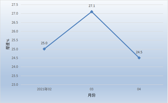 開平市1-4月經(jīng)濟運行簡況 1-4月,全市主要經(jīng)濟指標(biāo)運行簡況如下: 一、工業(yè)生產(chǎn) 1-4月,開平規(guī)模以上工業(yè)企業(yè)累計完成工業(yè)增加值39.60億元,同比增長34.6%。 分經(jīng)濟類型看,股份制企業(yè)增長38.0%;外商及港澳臺商投資企業(yè)增長33.3%;私營企業(yè)增長38.1%。分門類看,采礦業(yè)增加值下降0.7%,制造業(yè)增加值增長35.2%,電力、熱力、燃?xì)饧八a(chǎn)和供應(yīng)業(yè)增加值增長24.4%。 1-4月全市工業(yè)用電量增長33.0%。 圖一:2021年2月以來我市工業(yè)增加值增速情況 二、投資 1-4月,全市完成固定資產(chǎn)投資同比增長25.4%。分經(jīng)濟類型看,國有投資增長9.5%;民間投資增長49.6%。分產(chǎn)業(yè)看,第一產(chǎn)業(yè)投資增長384.1%;第二產(chǎn)業(yè)投資增長54.6%,其中工業(yè)投資增長54.6%;第三產(chǎn)業(yè)投資增長7.4%,其中房地產(chǎn)投資下降16.3%。 三、消費市場 1-4月,我市完成社會消費品零售總額53.61億元,同比增長24.5%。 圖二:2021年2月以來我市社會消費品零售總額增速情況 四、財政收入 1-4月,全市實現(xiàn)地方一般公共預(yù)算收入9.75億元,同比增長23.3%,其中稅收收入5.70億元,同比增長17.6%。 五、金融市場 1-4月,全市金融機構(gòu)人民幣各項存款余額718.87億元,同比增長6.4%;人民幣各項貸款余額498.76億元,同比增長15.8%。