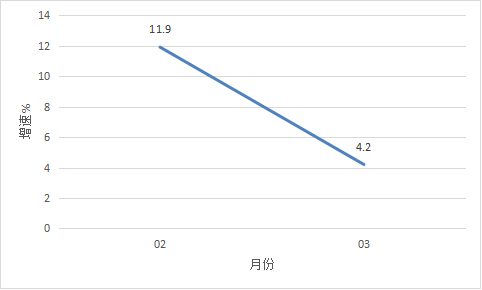 2022年2月以來我市規(guī)模以上工業(yè)增加值情況 三、投資 一季度,全市完成固定資產(chǎn)投資同比增長25.6%。從分經(jīng)濟類型看,國有投資增長126.6%;民間投資增長25.7%。分產(chǎn)業(yè)看,第一產(chǎn)業(yè)投資增長52.0%;第二產(chǎn)業(yè)投資增長13.9%,其中工業(yè)投資增長13.9%;第三產(chǎn)業(yè)投資增長34.6%,其中房地產(chǎn)投資增長6.3%。 四、消費市場 一季度,我市完成社會消費品零售總額42.49億元,同比增長3.5%。 圖二