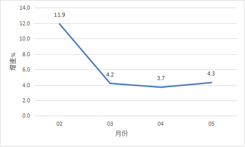 開平市1-5月經(jīng)濟運行簡況 1-5月,全市主要經(jīng)濟指標(biāo)運行簡況如下: 一、工業(yè)生產(chǎn) 1-5月,開平規(guī)模以上工業(yè)企業(yè)累計完成工業(yè)增加值51.28億元,同比增長4.3%。 分經(jīng)濟類型看,股份制企業(yè)增長9.9%;外商及港澳臺商投資企業(yè)下降0.2%;私營企業(yè)增長4.1%。分門類看,采礦業(yè)增加值增長13.3%,制造業(yè)增加值增長4.4%,電力、熱力、燃氣及水生產(chǎn)和供應(yīng)業(yè)增加值下降1.3%。 1-5月全市工業(yè)用電量下降5.0%。 圖一