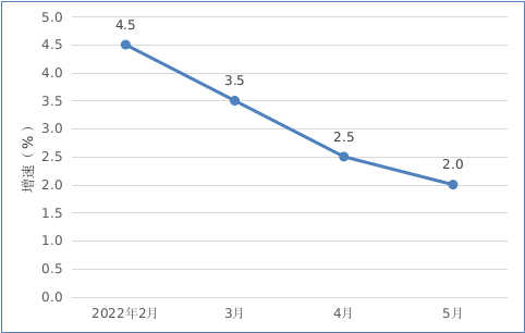 2022年2月以來我市規(guī)模以上工業(yè)增加值情況 二、投資 1-5月,全市完成固定資產(chǎn)投資同比下降5.9%。從分經(jīng)濟類型看,國有投資增長40.8%;民間投資下降6.4%。分產(chǎn)業(yè)看,第一產(chǎn)業(yè)投資下降37.2%;第二產(chǎn)業(yè)投資增長4.5%,其中工業(yè)投資增長4.5%;第三產(chǎn)業(yè)投資下降10.7%,其中房地產(chǎn)投資下降27.1%。 三、消費市場 1-5月,我市完成社會消費品零售總額70.08億元,同比增長2.0%。 圖二 2022年2月以來我市社會消費品零售總額情況 四、財政收入 1-5月,全市實現(xiàn)地方一般公共預(yù)算收入10.92億元,同比下降10.9%,其中稅收收入5.44億元,同比下降20.0%。 五、金融市場 1-5月,全市金融機構(gòu)本外幣各項存款余額796.94億元,同比增長7.5%;本外幣各項貸款余額521.13億元,同比增長3.8%。全市金融機構(gòu)人民幣各項存款余額776.47億元,同比增長7.9%;人民幣各項貸款余額519.10億元,同比增長3.7%。 2022.6.28