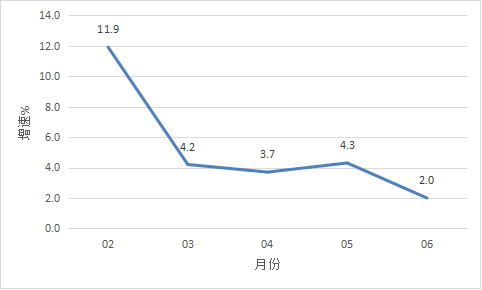 2022年2月以來我市規(guī)模以上工業(yè)增加值情況 四、投資 上半年,全市完成固定資產投資同比下降7.3%。從分經濟類型看,國有投資增長50.5%;民間投資下降10.1%。分產業(yè)看,第一產業(yè)投資下降45.0%;第二產業(yè)投資下降3.1%,其中工業(yè)投資下降3.1%;第三產業(yè)投資下降8.3%,其中房地產投資下降22.9%。 五、消費市場 上半年,我市完成社會消費品零售總額83.74億元,同比增長2.4%。 圖二