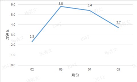 2023年1-5月開平市經(jīng)濟(jì)運(yùn)行簡(jiǎn)況 1-5月,全市主要經(jīng)濟(jì)指標(biāo)運(yùn)行簡(jiǎn)況如下: 一、工業(yè)生產(chǎn) 1-5月,開平規(guī)模以上工業(yè)企業(yè)累計(jì)完成工業(yè)增加值51.80億元,同比增長(zhǎng)3.7%。 分經(jīng)濟(jì)類型看,股份制企業(yè)增長(zhǎng)6.9%;外商及港澳臺(tái)商投資企業(yè)增長(zhǎng)1.3%;私營(yíng)企業(yè)增長(zhǎng)6.4%。分門類看,采礦業(yè)增加值增長(zhǎng)23.6%,制造業(yè)增加值增長(zhǎng)3.8%,電力、熱力、燃?xì)饧八a(chǎn)和供應(yīng)業(yè)增加值下降2.9%。 1-5月全市工業(yè)用電量下降1.9%。 圖一 2023年2月以來開平市規(guī)模以上工業(yè)增加值增速 二、投資 1-5月,全市完成固定資產(chǎn)投資同比下降1.0%。從分經(jīng)濟(jì)類型看,國(guó)有投資下降7.2%;民間投資下降5.2%。分產(chǎn)業(yè)看,第一產(chǎn)業(yè)投資下降53.9%;第二產(chǎn)業(yè)投資增長(zhǎng)35.0%,其中工業(yè)投資增長(zhǎng)35.0%;第三產(chǎn)業(yè)投資下降25.3%,其中房地產(chǎn)投資下降4.5%。 三、消費(fèi)市場(chǎng) 1-5月,我市完成社會(huì)消費(fèi)品零售總額72.34億元,同比增長(zhǎng)3.2%。 圖二 2023年2月以來開平市社會(huì)消費(fèi)品零售總額增速 四、財(cái)政收入 1-5月,全市實(shí)現(xiàn)地方一般公共預(yù)算收入11.31億元,同比增長(zhǎng)3.6%,其中稅收收入7.15億元,同比增長(zhǎng)31.5%。 五、金融市場(chǎng) 1-5月,全市金融機(jī)構(gòu)本外幣各項(xiàng)存款余額905.66億元,同比增長(zhǎng)13.6%;本外幣各項(xiàng)貸款余額633.01億元,同比增長(zhǎng)21.5%。全市金融機(jī)構(gòu)人民幣各項(xiàng)存款余額885.43億元,同比增長(zhǎng)14.0%;人民幣各項(xiàng)貸款余額631.25億元,同比增長(zhǎng)21.6%。 六、外貿(mào)進(jìn)出口 1-5月,全市外貿(mào)進(jìn)出口總額60.8億元,同比下降15.3%。其中,進(jìn)口4.9億元,同比下降13.0%;出口55.9億元,同比下降15.5%。