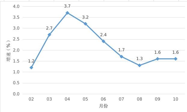 2023年1-10月開平市經(jīng)濟運行簡況 1-10月,全市主要經(jīng)濟指標運行簡況如下: 一、工業(yè)生產(chǎn) 1-10月,開平規(guī)模以上工業(yè)企業(yè)累計完成工業(yè)增加值110.40億元,同比增長5.1%。 分經(jīng)濟類型看,股份制企業(yè)增長7.5%;外商及港澳臺商投資企業(yè)增長3.2%;私營企業(yè)增長5.0%。分門類看,采礦業(yè)增加值增長9.7%,制造業(yè)增加值增長5.2%,電力、熱力、燃氣及水生產(chǎn)和供應(yīng)業(yè)增加值下降0.9%。 1-10月全市工業(yè)用電量增長4.2%。 圖一 2023年2月以來開平市規(guī)模以上工業(yè)增加值增速 二、投資 1-10月,全市完成固定資產(chǎn)投資同比下降10.0%。從分經(jīng)濟類型看,國有投資下降21.2%;民間投資下降11.8%。分產(chǎn)業(yè)看,第一產(chǎn)業(yè)投資增長7.3%;第二產(chǎn)業(yè)投資增長9.5%,其中工業(yè)投資增長9.5%;第三產(chǎn)業(yè)投資下降27.3%,其中房地產(chǎn)投資下降8.5%。 三、消費市場 1-10月,我市完成社會消費品零售總額156.61億元,同比增長1.6%。 圖二 2023年2月以來開平市社會消費品零售總額增速 四、財政收入 1-10月,全市實現(xiàn)地方一般公共預(yù)算收入24.35億元,同比下降7.5%,其中稅收收入13.69億元,同比增長9.0%。 五、金融市場 1-10月,全市金融機構(gòu)本外幣各項存款余額930.12億元,同比增長12.6%;本外幣各項貸款余額663.18億元,同比增長20.5%。全市金融機構(gòu)人民幣各項存款余額911.62億元,同比增長13.0%;人民幣各項貸款余額661.65億元,同比增長20.2%。 六、外貿(mào)進出口 1-10月,全市外貿(mào)進出口總額124.8億元,同比下降9.6%。其中,進口9.8億元,同比下降13.3%;出口115.0億元,同比下降9.3%。 2023.11.28