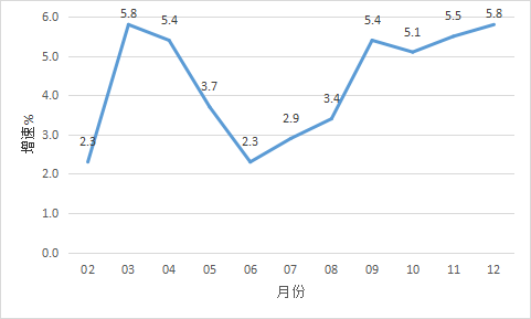 2023年開平市經(jīng)濟(jì)運(yùn)行簡況 2023年,全市主要經(jīng)濟(jì)指標(biāo)運(yùn)行簡況如下: 一、地區(qū)生產(chǎn)總值 根據(jù)江門市地區(qū)生產(chǎn)總值統(tǒng)一核算結(jié)果,2023年,開平市實(shí)現(xiàn)地區(qū)生產(chǎn)總值500.36億元,同比增長5.5%。全市三次產(chǎn)業(yè)結(jié)構(gòu)比為12.3∶49.0∶38.8。其中,第一產(chǎn)業(yè)增加值61.31億元,增長5.9%;第二產(chǎn)業(yè)增加值245.01億元,增長6.2%;第三產(chǎn)業(yè)增加值194.04億元,增長4.4%。 二、農(nóng)林牧漁業(yè) 2023年,農(nóng)林牧漁業(yè)總產(chǎn)值119.41億元,同比增長6.1%。分行業(yè)看,2023年全市農(nóng)業(yè)產(chǎn)值同比增長5.2%,林業(yè)產(chǎn)值增長13.2%,牧業(yè)產(chǎn)值增長6.9%,漁業(yè)產(chǎn)值增長6.9%,農(nóng)林牧漁專業(yè)及輔助性活動(dòng)產(chǎn)值增長5.0%。 三、工業(yè)生產(chǎn) 2023年,開平規(guī)模以上工業(yè)企業(yè)累計(jì)完成工業(yè)增加值137.01億元,同比增長5.8%。 分經(jīng)濟(jì)類型看,股份制企業(yè)增長9.5%;外商及港澳臺(tái)商投資企業(yè)增長2.3%;私營企業(yè)增長5.0%。分門類看,采礦業(yè)增加值增長7.4%,制造業(yè)增加值增長5.3%,電力、熱力、燃?xì)饧八a(chǎn)和供應(yīng)業(yè)增加值增長26.1%。 2023年全市工業(yè)用電量增長5.5%。 圖一 2023年2月以來開平市規(guī)模以上工業(yè)增加值增速 四、投資 2023年,全市完成固定資產(chǎn)投資同比下降6.7%。從分經(jīng)濟(jì)類型看,國有投資下降16.6%;民間投資下降7.1%。分產(chǎn)業(yè)看,第一產(chǎn)業(yè)投資增長12.8%;第二產(chǎn)業(yè)投資增長10.7%,其中工業(yè)投資增長10.7%;第三產(chǎn)業(yè)投資下降22.8%,其中房地產(chǎn)投資下降4.5%。 五、消費(fèi)市場 2023年,我市完成社會(huì)消費(fèi)品零售總額188.99億元,同比增長1.7%。 圖二 2023年2月以來開平市社會(huì)消費(fèi)品零售總額增速 六、財(cái)政收入 2023年,全市實(shí)現(xiàn)地方一般公共預(yù)算收入31.03億元,同比增長0.8%,其中稅收收入16.90億元,同比增長8.8%。 七、金融市場 12月末,全市金融機(jī)構(gòu)本外幣各項(xiàng)存款余額934.48億元,同比增長12.0%;本外幣各項(xiàng)貸款余額675.92億元,同比增長17.5%。全市金融機(jī)構(gòu)人民幣各項(xiàng)存款余額916.28億元,同比增長12.4%;人民幣各項(xiàng)貸款余額675.03億元,同比增長18.0%。 八、外貿(mào)進(jìn)出口 2023年,全市外貿(mào)進(jìn)出口總額152.4億元,同比下降8.3%。其中,進(jìn)口12.1億元,同比下降14.7%;出口140.3億元,同比下降7.7%。