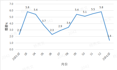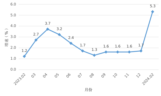 1-2月開平市經(jīng)濟(jì)運行簡況 1-2月,全市主要經(jīng)濟(jì)指標(biāo)運行簡況如下: 一、工業(yè)生產(chǎn) 1-2月,開平規(guī)模以上工業(yè)企業(yè)累計完成工業(yè)增加值17.60億元,同比增長1.4%。 分經(jīng)濟(jì)類型看,股份制企業(yè)增長13.5%;外商及港澳臺商投資企業(yè)下降8.9%;私營企業(yè)增長13.1%。分門類看,采礦業(yè)增加值下降48.6%,制造業(yè)增加值增長0.8%,電力、熱力、燃?xì)饧八a(chǎn)和供應(yīng)業(yè)增加值增長72.1%。 1-2月全市工業(yè)用電量增長15.79%。 圖一 2023年2月以來開平市規(guī)模以上工業(yè)增加值增速 二、投資 1-2月,全市完成固定資產(chǎn)投資同比增長12.4%。分經(jīng)濟(jì)類型看,國有投資增長3.4%;民間投資增長7.9%。分產(chǎn)業(yè)看,第一產(chǎn)業(yè)投資下降100.0%;第二產(chǎn)業(yè)投資增長19.6%,其中工業(yè)投資增長19.6%;第三產(chǎn)業(yè)投資下降27.7%,其中房地產(chǎn)投資下降27.4%。 三、消費市場 1-2月,我市完成社會消費品零售總額30.44億元,同比增長5.3%。 圖二 2023年2月以來開平市社會消費品零售總額增速 四、財政收入 1-2月,全市實現(xiàn)地方一般公共預(yù)算收入5.32億元,同比增長5.8%,其中稅收收入3.23億元,同比下降0.2%。 五、金融市場 2月末,全市金融機(jī)構(gòu)本外幣各項存款余額951.83億元,同比增長9.0%;本外幣各項貸款余額695.17億元,同比增長16.8%。 六、外貿(mào)進(jìn)出口 1-2月,全市外貿(mào)進(jìn)出口總額24.8億元,同比增長9.8%。其中,進(jìn)口2.1億元,同比下降2.9%;出口22.7億元,同比增長11.1%。 2024.03.29