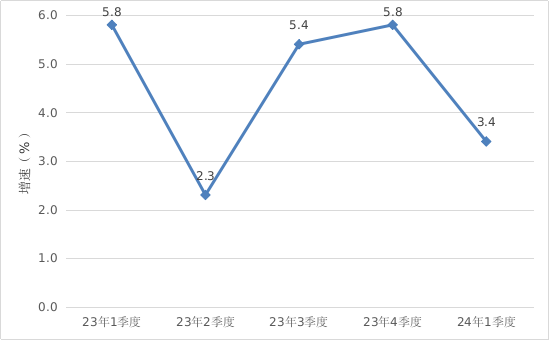 2024年一季度開平市經(jīng)濟(jì)運(yùn)行簡(jiǎn)況 一季度,全市主要經(jīng)濟(jì)指標(biāo)運(yùn)行簡(jiǎn)況如下: 一、地區(qū)生產(chǎn)總值 根據(jù)江門市地區(qū)生產(chǎn)總值統(tǒng)一核算結(jié)果,2024年一季度,開平市實(shí)現(xiàn)地區(qū)生產(chǎn)總值109.12億元,同比增長(zhǎng)2.6%。其中,第一產(chǎn)業(yè)增加值12.65億元,增長(zhǎng)7.0%;第二產(chǎn)業(yè)增加值46.79億元,增長(zhǎng)3.2%;第三產(chǎn)業(yè)增加值49.68億元,增長(zhǎng)0.8%。 二、農(nóng)林牧漁業(yè) 一季度,農(nóng)林牧漁業(yè)總產(chǎn)值26.41億元,同比增長(zhǎng)7.1%。分行業(yè)看,全市農(nóng)業(yè)(種植業(yè))產(chǎn)值增長(zhǎng)3.8%,林業(yè)產(chǎn)值下降11.6%,牧業(yè)產(chǎn)值增長(zhǎng)9.2%,漁業(yè)產(chǎn)值增長(zhǎng)4.5%,農(nóng)林牧漁專業(yè)及輔助性活動(dòng)產(chǎn)值增長(zhǎng)7.4%。 三、工業(yè)生產(chǎn) 一季度,開平規(guī)模以上工業(yè)企業(yè)累計(jì)完成工業(yè)增加值29.14億元,同比增長(zhǎng)3.4%。 分經(jīng)濟(jì)類型看,股份制企業(yè)增長(zhǎng)12.2%;外商及港澳臺(tái)商投資企業(yè)下降4.1%;私營(yíng)企業(yè)增長(zhǎng)10.7%。分門類看,采礦業(yè)增加值下降37.4%,制造業(yè)增加值增長(zhǎng)2.4%,電力、熱力、燃?xì)饧八a(chǎn)和供應(yīng)業(yè)增加值增長(zhǎng)96.4%。 一季度全市工業(yè)用電量增長(zhǎng)10.6%。 圖一