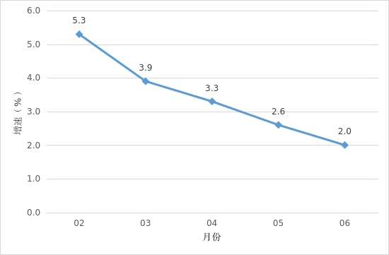 2024年上半年開平市經(jīng)濟(jì)運(yùn)行簡況 上半年,全市主要經(jīng)濟(jì)指標(biāo)運(yùn)行簡況如下: 一、地區(qū)生產(chǎn)總值 根據(jù)江門市地區(qū)生產(chǎn)總值統(tǒng)一核算結(jié)果,上半年,開平市實(shí)現(xiàn)地區(qū)生產(chǎn)總值229.58億元,同比增長3.1%。其中,第一產(chǎn)業(yè)增加值25.76億元,同比增長5.0%;第二產(chǎn)業(yè)增加值107.95億元,增長5.2%;第三產(chǎn)業(yè)增加值95.87億元,增長0.5%。 二、農(nóng)林牧漁業(yè) 上半年,全市實(shí)現(xiàn)農(nóng)林牧漁業(yè)總產(chǎn)值50.85億元,同比增長5.2%。其中,農(nóng)業(yè)產(chǎn)值14.47億元,同比增長5.8%;林業(yè)產(chǎn)值1.61億元,增長4.9%;牧業(yè)產(chǎn)值25.83億元,增長4.5%;漁業(yè)產(chǎn)值4.31億元,增長3.4%;農(nóng)林牧漁專業(yè)及輔助性活動(dòng)產(chǎn)值4.63億元,增長10.9%。 三、工業(yè)生產(chǎn) 上半年,開平規(guī)模以上工業(yè)企業(yè)累計(jì)完成工業(yè)增加值63.23億元,同比增長3.4%。 分經(jīng)濟(jì)類型看,股份制企業(yè)增長10.2%;外商及港澳臺(tái)商投資企業(yè)下降2.7%;私營企業(yè)增長5.6%。分門類看,采礦業(yè)增加值下降21.7%,制造業(yè)增加值增長2.1%,電力、熱力、燃?xì)饧八a(chǎn)和供應(yīng)業(yè)增加值增長105.4%。 上半年全市工業(yè)用電量增長8.2%。 圖一 2024年2月以來開平市規(guī)模以上工業(yè)增加值增速 四、投資 上半年,全市完成固定資產(chǎn)投資同比增長6.1%。分經(jīng)濟(jì)類型看,國有投資下降15.2%;民間投資下降1.6%。分產(chǎn)業(yè)看,第一產(chǎn)業(yè)投資下降49.1%;第二產(chǎn)業(yè)投資增長6.5%,其中工業(yè)投資增長6.5%;第三產(chǎn)業(yè)投資增長6.8%,其中房地產(chǎn)投資下降15.3%。 五、消費(fèi)市場 上半年,我市完成社會(huì)消費(fèi)品零售總額87.86億元,同比增長2.0%。 圖二 2024年2月以來開平市社會(huì)消費(fèi)品零售總額增速 六、財(cái)政收入 上半年,全市實(shí)現(xiàn)地方一般公共預(yù)算收入13.49億元,同比增長7.9%,其中稅收收入7.91億元,同比下降8.4%。 七、金融市場 6月末,全市金融機(jī)構(gòu)本外幣各項(xiàng)存款余額960.38億元,同比增長5.2%;本外幣各項(xiàng)貸款余額705.94億元,同比增長9.0%。 八、外貿(mào)進(jìn)出口 上半年,全市外貿(mào)進(jìn)出口總額78.3億元,同比增長5.8%。其中,進(jìn)口6.8億元,同比增長11.3%;出口71.5億元,同比增長5.3%。 2024.7.31