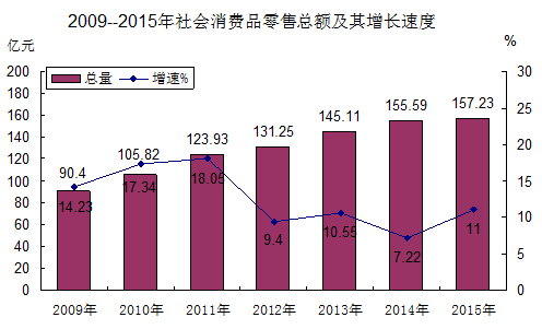 2015年,全市深入貫徹落實(shí)上級(jí)黨委、政府的各項(xiàng)決策部署,沉著應(yīng)對(duì)各種困難和挑戰(zhàn),以“奮發(fā)圖強(qiáng)、改革攻堅(jiān)、提質(zhì)發(fā)展”為工作主線,主動(dòng)適應(yīng)經(jīng)濟(jì)發(fā)展新常態(tài),團(tuán)結(jié)和帶領(lǐng)廣大干部群眾出實(shí)招、干實(shí)事、求實(shí)效,推動(dòng)經(jīng)濟(jì)社會(huì)持續(xù)、健康、穩(wěn)步發(fā)展,全市經(jīng)濟(jì)社會(huì)發(fā)展在“十二五”收官之年取得新的成就。 一、綜合 初步核算,2015年全市實(shí)現(xiàn)地區(qū)生產(chǎn)總值287.92億元(當(dāng)年價(jià)),比上年增長(zhǎng)8.2%。其中:第一產(chǎn)業(yè)增加值27.72億元,增長(zhǎng)3.2%;第二產(chǎn)業(yè)增加值141.58億元,增長(zhǎng)8.5%;第三產(chǎn)業(yè)增加值118.62億元,增長(zhǎng)8.9%。第一、二、三產(chǎn)業(yè)增加值的比重為9.63:49.18:41.19。人均地區(qū)生產(chǎn)總值4.07萬(wàn)元。 圖1: 二、農(nóng)業(yè) 全年實(shí)現(xiàn)農(nóng)業(yè)總產(chǎn)值50.92億元,比上年增長(zhǎng)3.7%。全年糧食作物播種面積67.83萬(wàn)畝,比上年下降0.10%。其中:水稻種植面積61.86萬(wàn)畝,比上年增長(zhǎng)2.50%。 全年糧食總產(chǎn)量22.56萬(wàn)噸,比上年增長(zhǎng)0.15%,其中:稻谷20.79萬(wàn)噸,比上年下降0.09%。 圖2: 全市更新造林面積4.68萬(wàn)畝,比上年增長(zhǎng)14.71%;木材砍伐17.75萬(wàn)立方米,比上年下降2.81%。 畜牧業(yè)肉類總產(chǎn)量7.52萬(wàn)噸,比上年增長(zhǎng)3.72%;全年生豬出欄量60萬(wàn)頭,比上年增長(zhǎng)1.68%;家禽出欄量2373.06萬(wàn)只,比上年增長(zhǎng)6.39%;禽蛋全年總產(chǎn)量1.53萬(wàn)噸,比上年增長(zhǎng)24.39%;水產(chǎn)品產(chǎn)量5.18萬(wàn)噸,比上年增長(zhǎng)3.6%。 三、工業(yè)和建筑業(yè) 2015年,全市規(guī)模以上工業(yè)企業(yè)257家,規(guī)模以上工業(yè)增加值比上年增長(zhǎng)9.1%,工業(yè)總產(chǎn)值比上年增長(zhǎng)15.37%。工業(yè)總產(chǎn)值中,按輕重工分:輕工業(yè)增長(zhǎng)17.38%,重工業(yè)增長(zhǎng)13.40%;按企業(yè)經(jīng)濟(jì)類型分:外商及港澳臺(tái)商投資企業(yè)增長(zhǎng)13.20%;股份制企業(yè)增長(zhǎng)17.10%;其他經(jīng)濟(jì)類型增長(zhǎng)28.08%。 圖3: 全年規(guī)模以上工業(yè)企業(yè)銷(xiāo)售產(chǎn)值比上年增長(zhǎng)11.46%,產(chǎn)品銷(xiāo)售率90.66%,主營(yíng)業(yè)務(wù)收入比上年增長(zhǎng)9.94%,利潤(rùn)總額比上年增長(zhǎng)54.81%。 全年具有資質(zhì)等級(jí)的總承包和專業(yè)承包建筑企業(yè)完成總產(chǎn)值125.37億元,比上年增長(zhǎng)28.69%。工程結(jié)算收入126.24億元,比上年增長(zhǎng)94.07%。實(shí)現(xiàn)利潤(rùn)總額5.1億元,比上年增長(zhǎng)48.26%。 四、固定資產(chǎn)投資 全年固定資產(chǎn)完成投資總額209.11億元,比上年增長(zhǎng)21.16%。其中:房地產(chǎn)完成投資27.86億元,比上年下降6.27%。固定資產(chǎn)投資中,第一產(chǎn)業(yè)完成投資2.3億元,比上年下降11.53 %;第二產(chǎn)業(yè)完成投資103.93億元,比上年增長(zhǎng)35.38%;第三產(chǎn)業(yè)完成投資102.88億元,比上年增長(zhǎng)10.35%。民資投資穩(wěn)定增長(zhǎng),全年民資直接投資116.84億元,比上年增長(zhǎng)51.03%。 全年商品房施工面積382.90萬(wàn)平方米,比上年增長(zhǎng)24.3%;竣工面積28.17萬(wàn)平方米,比上年下降37.83%;商品房銷(xiāo)售面積80.22萬(wàn)平方米,比上年增長(zhǎng)56.61%;商品房銷(xiāo)售額34.87億元,比上年增長(zhǎng)36.46%。 五、交通運(yùn)輸和郵電業(yè) 全年社會(huì)客運(yùn)量2761萬(wàn)人,比上年下降0.62%;客運(yùn)周轉(zhuǎn)量99811萬(wàn)人公里,比上年增長(zhǎng)2.74%;港口貨物吞吐量985.19萬(wàn)噸,比上年下降6.44%。 年末市內(nèi)公路通車(chē)?yán)锍?82.9公里。汽車(chē)保有量7.80萬(wàn)輛,比上年增長(zhǎng)15.90%。摩托車(chē)保有量21.91萬(wàn)輛,比上年增長(zhǎng)6.57%。公共汽車(chē)擁有量0.02萬(wàn)輛。 年末固定電話用戶16.8萬(wàn)戶,移動(dòng)電話用戶79.48萬(wàn)戶,國(guó)際互聯(lián)網(wǎng)用戶15.75萬(wàn)戶,互聯(lián)網(wǎng)用戶普及率78.90%。 六、國(guó)內(nèi)貿(mào)易 全年社會(huì)消費(fèi)品零售總額157.23億元,比上年增長(zhǎng)11.00%。其中:城市消費(fèi)品零售額111.75億元,比上年增長(zhǎng)12.84%;農(nóng)村消費(fèi)品零售額45.48億元,比上年增長(zhǎng)6.72%。 按行業(yè)分,批發(fā)零售貿(mào)易業(yè)實(shí)現(xiàn)零售額139.58億元,比上年增長(zhǎng)11.57%;住宿和餐飲業(yè)實(shí)現(xiàn)零售額17.65億元,比上年增長(zhǎng)6.68%。其中:限額以上貿(mào)易企業(yè)實(shí)現(xiàn)零售額37.75億元,比上年增長(zhǎng)2.43%。 圖4: 七、對(duì)外經(jīng)濟(jì)貿(mào)易和旅游業(yè) 全年海關(guān)進(jìn)出口總值149.1億元,比上年下降8.6%。外貿(mào)出口總值124.3億元,比上年下降5.2%。進(jìn)口總值24.8億元,比上年下降22.7%。實(shí)現(xiàn)對(duì)外貿(mào)易順差99.5億元。 全年實(shí)際利用外商直接投資0.55億美元,比上年下降8.99%。合同利用外資0.2億美元,比上年下降80.02%。新簽利用外資合同13宗,比上年下降18.75%,其中:外商直接投資13宗,比上年下降18.75%。外向型企業(yè)491家,其中:三資企業(yè)411家,來(lái)料加工企業(yè)80家。 全年旅游業(yè)共接待國(guó)內(nèi)外游客573.07萬(w