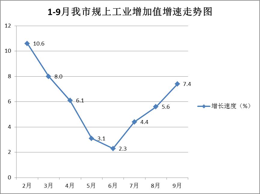 今年9月份,我市規(guī)模以上工業(yè)企業(yè)經(jīng)濟(jì)平穩(wěn)運行,1至9月全市累計完成規(guī)模以上工業(yè)企業(yè)增加值87.8億元,比去年同期增長7.4%,環(huán)比提升1.8個百分點,在江門四市三區(qū)中排名第五位。累計完成全年目標(biāo)73.69%,比去年同期提高了0.1個百分點。在所有行業(yè)中,金屬制品、裝備制造行業(yè)保持高增長,9月金屬制品業(yè)累計產(chǎn)值增長47.97%,裝備制造業(yè)累計產(chǎn)值增長18.1%,兩大行業(yè)帶動我市規(guī)上工業(yè)經(jīng)濟(jì)增長。同時我市三大支柱產(chǎn)業(yè)規(guī)上工業(yè)增加值同比增長21.65%,其中食品制造業(yè)增加值比上年增長8.90%,化纖紡織服裝制造業(yè)增長8.44%,水暖衛(wèi)浴制造業(yè)增長46.30%,這三大支柱產(chǎn)業(yè)規(guī)上工業(yè)增加值占全部規(guī)上工業(yè)增加值的比重為52.35%,拉動我市規(guī)上工業(yè)增加值增長9.32個百分點。