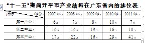 根據(jù)2011年《廣東統(tǒng)計年鑒》資料,廣東省行政區(qū)域中縣級地區(qū)有67個,其中:縣級市有23個,縣41個,自治縣3個?,F(xiàn)以“十一五”期間的有關(guān)數(shù)據(jù)進行對比。