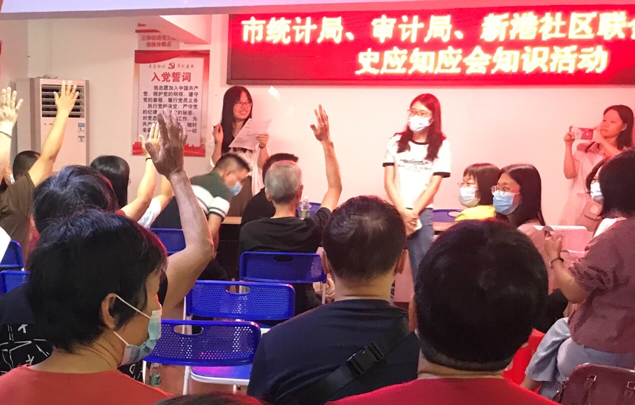 群眾黨員齊學習 為落實貫徹《中共開平市委黨史學習教育領導小組辦公室關于激活黨史學習教育“神經(jīng)末梢”工作方案》的文件精神,10月20日下午,市統(tǒng)計局黨組書記、局長李健鵬同志帶隊,組織全體黨員干部到新港社區(qū)參加由市統(tǒng)計局、市審計局、新港社區(qū)聯(lián)合開展黨史應知應會知識活動。 活動中,社區(qū)工作人員以《黨史學習教育應知應會知識手冊》的內(nèi)容為提綱,采用現(xiàn)場搶答的形式與社區(qū)居民開展互動,參與者可獲得由主辦方準備的小禮物。 本次活動是我市黨史學習教育的一項重要內(nèi)容?;顒雍螅w參加人員紛紛表示,主辦單位用群眾喜聞樂見的形式,將黨史知識送到了基層的家門口,加深了對黨史知識的認識,激發(fā)了學習黨史的熱情。