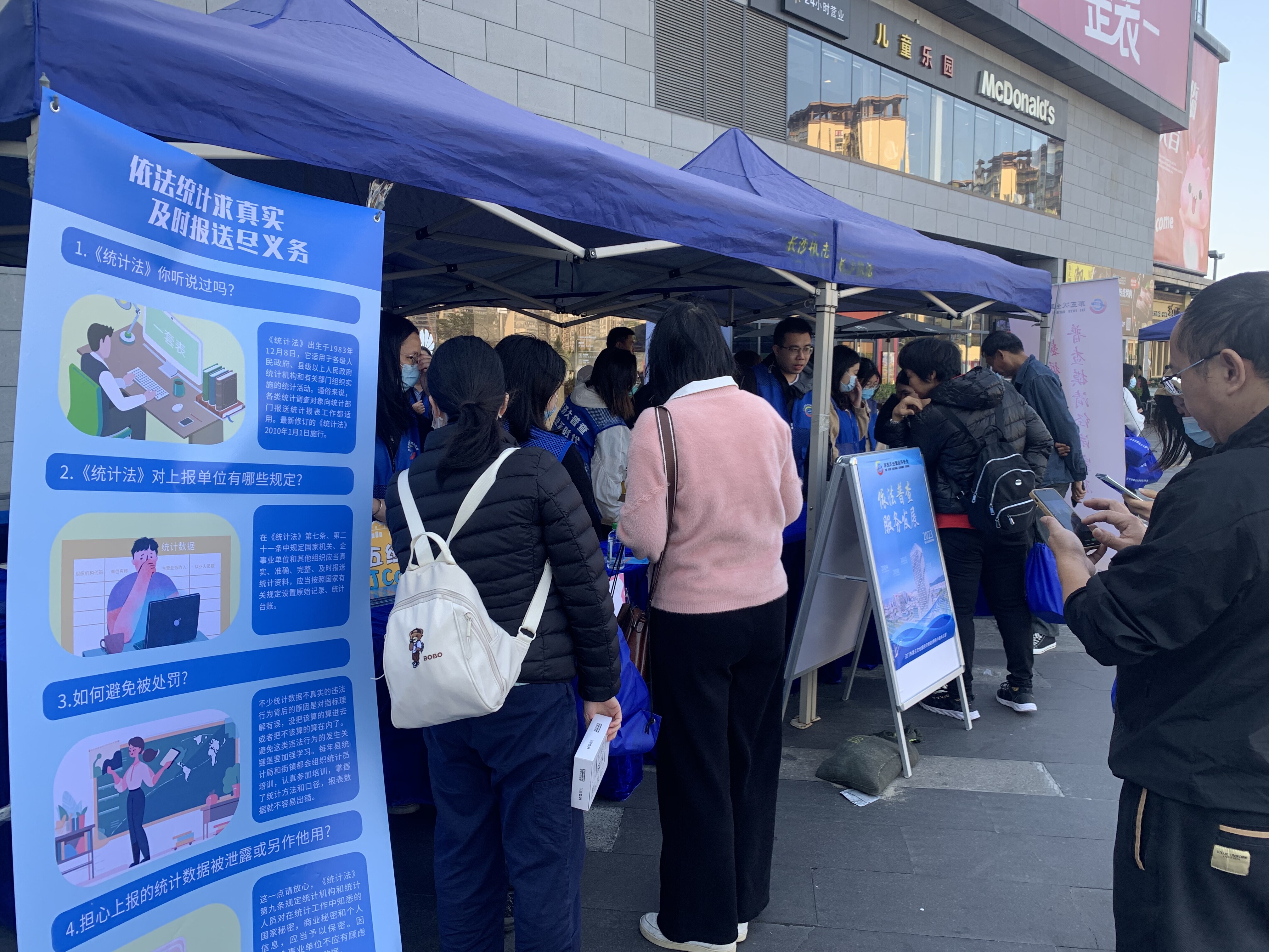 走進(jìn)統(tǒng)計(jì)法,打卡五經(jīng)普——開(kāi)平市統(tǒng)計(jì)局開(kāi)展統(tǒng)計(jì)法治宣傳活動(dòng) 為深入貫徹落實(shí)習(xí)近平法治思想,弘揚(yáng)統(tǒng)計(jì)法治精神,助力第五次全國(guó)經(jīng)濟(jì)普查,1月3日,開(kāi)平市統(tǒng)計(jì)局結(jié)合第五次全國(guó)經(jīng)濟(jì)普查啟動(dòng)儀式,在東匯城開(kāi)展“走進(jìn)統(tǒng)計(jì)法,打卡五經(jīng)普”為主題的統(tǒng)計(jì)法治宣傳活動(dòng)。 活動(dòng)現(xiàn)場(chǎng)通過(guò)向群眾派發(fā)統(tǒng)計(jì)法規(guī)宣傳小冊(cè)子和第五次全國(guó)經(jīng)濟(jì)普查宣傳單,擺放統(tǒng)計(jì)法宣傳展板和開(kāi)展統(tǒng)計(jì)法規(guī)知識(shí)小游戲等方式,強(qiáng)調(diào)依法統(tǒng)計(jì)的重要性,耐心解答群眾對(duì)統(tǒng)計(jì)法治與經(jīng)濟(jì)普查相關(guān)問(wèn)題,向社會(huì)公眾普及統(tǒng)計(jì)法治法規(guī),推動(dòng)依法統(tǒng)計(jì)、誠(chéng)信統(tǒng)計(jì)的理念深入群眾。 此次宣傳活動(dòng)與第五次全國(guó)經(jīng)濟(jì)普查啟動(dòng)儀式有機(jī)結(jié)合,加深群眾對(duì)統(tǒng)計(jì)法律法規(guī)知識(shí)的了解和認(rèn)識(shí),起到了良好的宣傳效果,有效增強(qiáng)了廣大群眾的統(tǒng)計(jì)法律意識(shí),提高群眾對(duì)統(tǒng)計(jì)和經(jīng)濟(jì)普查工作的配合和支持程度,讓法治精神更加深入人心,促進(jìn)社會(huì)各界走進(jìn)統(tǒng)計(jì),了解統(tǒng)計(jì),誠(chéng)信統(tǒng)計(jì),營(yíng)造良好的統(tǒng)計(jì)法治環(huán)境。 下一步,開(kāi)平市統(tǒng)計(jì)局將結(jié)合五經(jīng)普工作,采取多種形式深入開(kāi)展統(tǒng)計(jì)法治宣傳,持續(xù)推進(jìn)統(tǒng)計(jì)法律法規(guī)進(jìn)機(jī)關(guān)、下基層、進(jìn)企業(yè);持續(xù)做好統(tǒng)計(jì)法治工作,抓好統(tǒng)計(jì)普法宣傳教育,拓寬宣傳渠道,傳播統(tǒng)計(jì)法律知識(shí),弘揚(yáng)統(tǒng)計(jì)法治精神,積極運(yùn)用統(tǒng)計(jì)新方法,樹(shù)立統(tǒng)計(jì)新形象。
