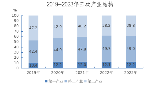 開平市二〇二三年 國民經(jīng)濟和社會發(fā)展統(tǒng)計公報 開平市統(tǒng)計局 2024年5月27日 2023年,開平市堅持以習(xí)近平新時代中國特色社會主義思想為指導(dǎo),全面貫徹黨的二十大精神,深入學(xué)習(xí)貫徹習(xí)近平總書記視察廣東重要講話、重要指示精神,認真貫徹省委“1310”具體部署,落實江門市委“1+6+3”工作安排和市委關(guān)于優(yōu)化提升“六大行動”要求,積極開展“狠抓落實年”,全年經(jīng)濟運行穩(wěn)中有進,民生福祉持續(xù)增進,高質(zhì)量發(fā)展邁出堅實步伐。 一、綜合 根據(jù)江門市地區(qū)生產(chǎn)總值統(tǒng)一核算結(jié)果,2023年開平實現(xiàn)地區(qū)生產(chǎn)總值(初步核算數(shù))500.36億元,同比增長5.5%。其中:第一產(chǎn)業(yè)增加值61.31億元,增長5.9%;第二產(chǎn)業(yè)增加值245.01億元,增長6.2%;第三產(chǎn)業(yè)增加值194.04億元,增長4.4%。全市三次產(chǎn)業(yè)結(jié)構(gòu)比重為12.2∶49.0∶38.8。人均地區(qū)生產(chǎn)總值67253元,增長6.0%。 圖1: 圖2: 二、農(nóng)業(yè) 全年實現(xiàn)農(nóng)業(yè)總產(chǎn)值119.41億元,比上年增長6.1%。全年糧食作物播種面積65.90萬畝,比上年下降0.3%。其中:水稻種植面積60.13萬畝,比上年下降0.4%。 全年糧食總產(chǎn)量(折糧)23.49萬噸,與上年持平,其中:稻谷21.91萬噸,比上年下降0.1%。 圖3: 全市更新造林面積6.85萬畝,比上年下降5.3%;木材砍伐18.38萬立方米,比上年增長5.0%。 畜牧業(yè)肉類總產(chǎn)量12.32萬噸,比上年增長7.1%;全年生豬出欄量58.75萬頭,比上年增長14.2%;家禽出欄量5350萬只,比上年增長3.3%;禽蛋全年總產(chǎn)量2.34萬噸,比上年增長36.0%;水產(chǎn)品產(chǎn)量6.10萬噸,比上年增長5.0%。 三、工業(yè)和建筑業(yè) 2023年,全市規(guī)模以上工業(yè)企業(yè)438家,規(guī)模以上工業(yè)增加值比上年增長5.8%,規(guī)模以上工業(yè)總產(chǎn)值比上年增長0.9%。規(guī)模以上工業(yè)總產(chǎn)值中,按輕重工業(yè)分:輕工業(yè)下降0.3%,重工業(yè)增長2.5%;按企業(yè)經(jīng)濟類型分:外商及港澳臺商投資企業(yè)下降3.5%,股份制企業(yè)增長5.2%,其他經(jīng)濟類型下降0.5%。 圖4: 全年規(guī)模以上工業(yè)企業(yè)銷售產(chǎn)值比上年下降1.2%,產(chǎn)品銷售率92.3%,主營業(yè)務(wù)收入比上年下降1.1%,利潤總額比上年下降26.3%。 全年具有資質(zhì)等級的總承包和專業(yè)承包建筑企業(yè)完成總產(chǎn)值267.59億元,比上年增長11.0%。主營業(yè)務(wù)收入104.34億元,比上年下降26.7%。實現(xiàn)利潤總額2.30億元,比上年下降55.4%。 四、固定資產(chǎn)投資 全年固定資產(chǎn)投資比上年下降6.7%。其中:房地產(chǎn)投資比上年下降4.5%。固定資產(chǎn)投資中,第一產(chǎn)業(yè)投資比上年增長12.8%;第二產(chǎn)業(yè)投資比上年增長10.7%;第三產(chǎn)業(yè)投資比上年下降22.8%。全年民資投資比上年下降7.1%。 全年商品房施工面積462.94萬平方米,比上年下降2.5%;竣工面積59.79萬平方米,比上年增長111.4%;商品房銷售面積58.60萬平方米,比上年增長9.4%;商品房銷售額36.74億元,比上年下降0.3%。 五、交通運輸和郵電業(yè) 全年社會客運量1473.3萬人,比上年下降4.03%;客運周轉(zhuǎn)量36227.0萬人公里,比上年增長0.03%;港口貨物吞吐量911.96萬噸,比上年增長62.1%。 汽車保有量16.42萬輛,比上年增長6.1%。摩托車保有量14.31萬輛,比上年下降4.6%。公共汽車擁有量208輛。 年末固定電話用戶6.89萬戶,移動電話用戶85.38萬戶。 六、國內(nèi)貿(mào)易 全年社會消費品零售總額188.99億元,比上年增長1.7%。其中:限額以上貿(mào)易單位實現(xiàn)社零額43.50億元,比上年下降6.2%。在限額以上批發(fā)和零售企業(yè)商品銷售額中,糧油、食品、飲料、煙酒類比上年增長44.6%,服裝、鞋帽、針紡織品類下降7.6%,化妝品類下降4.2%,金銀珠寶類下降12.8%,日用品類下降4.4%,體育、娛樂用品類下降49.1%,書報雜志類增長8.5%,家用電器和音像器材類增長4.1%,中西藥品類下降6.9%,文化辦公用品類下降9.4%,石油及制品類增長0.6%,汽車類下降0.8%。全年全市限額以上批零企業(yè)通過公共網(wǎng)絡(luò)實現(xiàn)的商品零售下降17.9%,占全市限額以上批零企業(yè)商品零售的1.0%。 圖5: 全年海關(guān)進出口總值152.4億元,比上年下降8.3%。外貿(mào)出口總值140.3億元,比上年下降7.7%。進口總值12.1億元,比上年下降14.7%。實現(xiàn)對外貿(mào)易順差128.2億元。 全年外商投資企業(yè)在營468家,比去年增加71家;新批設(shè)立外商投資企業(yè)79家,同比增加11家。合同利用外資金額6.56億元,比上年增長12.9%。實際吸收外商金額0.95億元,比上年下降71.0%。 全年旅游業(yè)共接待國內(nèi)外游客845.74萬人次,比上年增長78.8%,其中:國內(nèi)旅游者785.61萬人次,比上年增長68.3;國際旅游者60.13萬人次,比上年增長844.0%。全市擁有星級酒店2家,其中:五星級酒店1家,三星級1家。 八、財政金融 全年地方一般公共財政預(yù)算收入31.03億元,比上年增長0.8%;地方一般公共財政預(yù)算支出57.14億元,比上年增長0.9%。 年末金融機構(gòu)本外幣各項存款余額934.48億元,比上年增長12.0%。其中:境內(nèi)存款中住戶存款701.99億元,比上年增長9.2%。本外幣各項貸款余額675.92億元,比上年增長17.9%。僑匯收入0.39億美元,比上年下降16.7%。 九、科學(xué)技術(shù)和教育 全年國家級高新技術