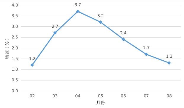 1-8月,全市主要經(jīng)濟(jì)指標(biāo)運(yùn)行簡況如下: 一、工業(yè)生產(chǎn) 1-8月,開平規(guī)模以上工業(yè)企業(yè)累計完成工業(yè)增加值87.34億元,同比增長3.5%。 分經(jīng)濟(jì)類型看,股份制企業(yè)增長5.4%;外商及港澳臺商投資企業(yè)增長2.0%;私營企業(yè)增長3.8%。分門類看,采礦業(yè)增加值增長12.7%,制造業(yè)增加值增長3.5%,電力、熱力、燃?xì)饧八a(chǎn)和供應(yīng)業(yè)增加值下降0.3%。 1-8月全市工業(yè)用電量增長3.2%。 圖一 2023年2月以來開平市規(guī)模以上工業(yè)增加值增速 二、投資 1-8月,全市完成固定資產(chǎn)投資同比下降11.5%。從分經(jīng)濟(jì)類型看,國有投資下降24.8%;民間投資下降14.2%。分產(chǎn)業(yè)看,第一產(chǎn)業(yè)投資下降22.1%;第二產(chǎn)業(yè)投資增長13.9%,其中工業(yè)投資增長13.9%;第三產(chǎn)業(yè)投資下降31.6%,其中房地產(chǎn)投資下降15.5%。 三、消費(fèi)市場 1-8月,我市完成社會消費(fèi)品零售總額119.70億元,同比增長1.3%。 圖二 2023年2月以來開平市社會消費(fèi)品零售總額增速 四、財政收入 1-8月,全市實(shí)現(xiàn)地方一般公共預(yù)算收入17.26億元,同比下降11.1%,其中稅收收入10.45億元,同比增長12.5%。 五、金融市場 1-8月,全市金融機(jī)構(gòu)本外幣各項存款余額898.73億元,同比增長12.3%;本外幣各項貸款余額646.92億元,同比增長18.3%。全市金融機(jī)構(gòu)人民幣各項存款余額880.40億元,同比增長12.8%;人民幣各項貸款余額644.90億元,同比增長18.1%。 六、外貿(mào)進(jìn)出口 1-8月,全市外貿(mào)進(jìn)出口總額99.8億元,同比下降12.3%。其中,進(jìn)口8.0億元,同比下降9.9%;出口91.8億元,同比下降12.5%。 2023.9.28