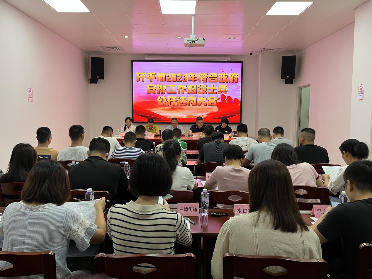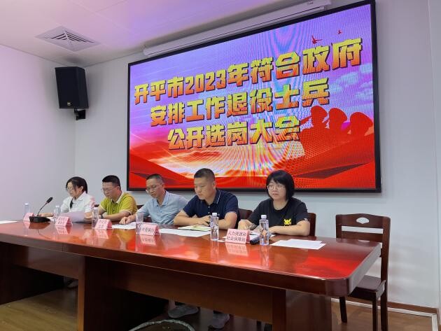 8月10日,開平市組織開展2023年符合政府安排工作條件退役士兵公開選崗大會。市紀(jì)委監(jiān)委、市委編辦、市人社局、市退役軍人事務(wù)局等單位相關(guān)負(fù)責(zé)同志以及符合政府安排工作退役士兵參加會議。