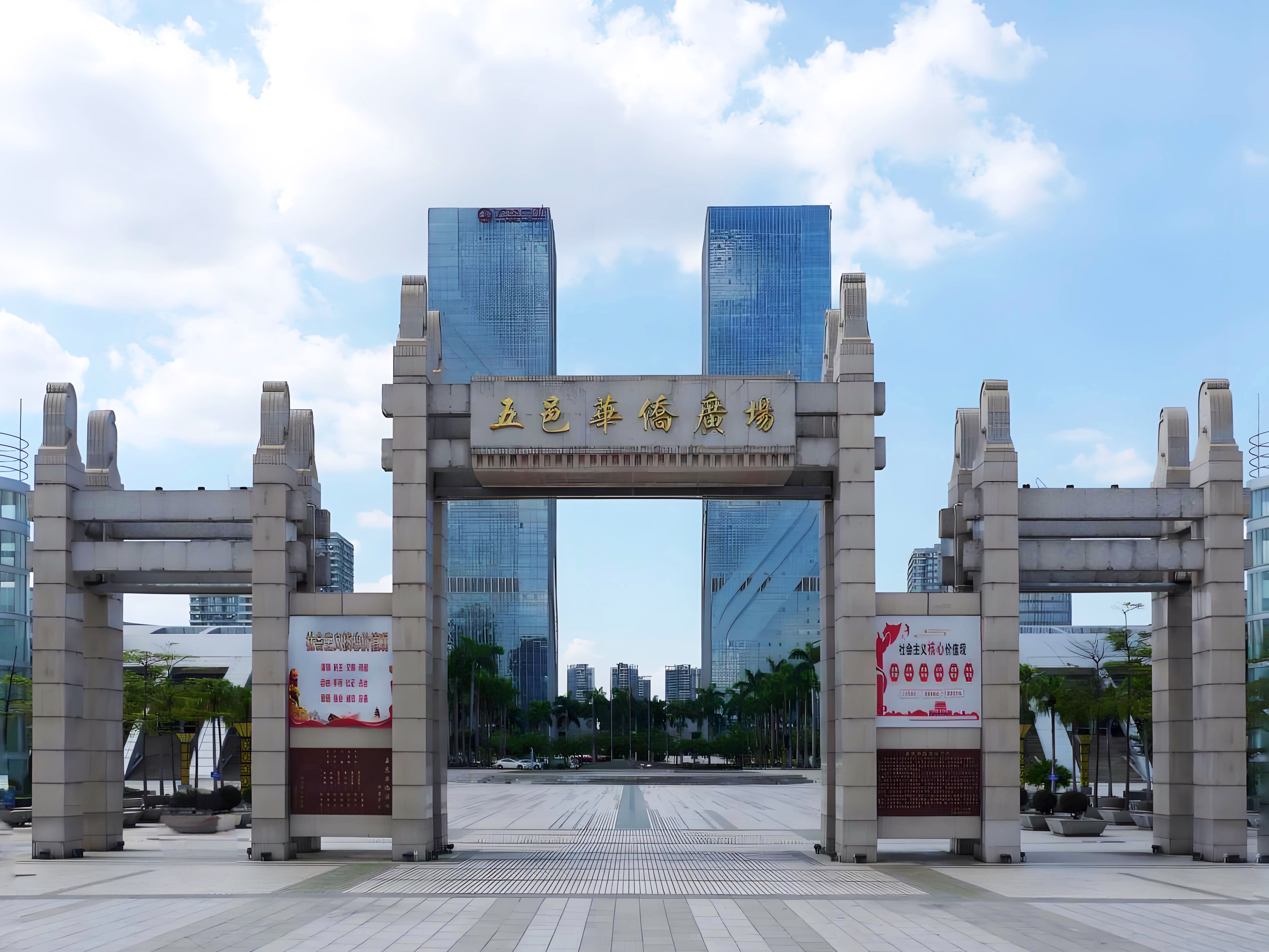 廣東省江門(mén)市蓬江區(qū)五邑華僑廣場(chǎng)。