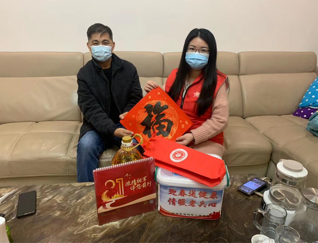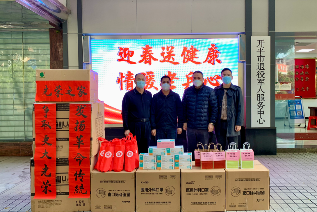 為弘揚(yáng)擁軍優(yōu)屬光榮傳統(tǒng),元旦期間,開平市、鎮(zhèn)、村三級(jí)退役軍人服務(wù)保障體系聯(lián)合開展“迎春送健康 情暖老兵心”活動(dòng),為我市二等以上功臣、烈屬、低保特困退役軍人等300名對(duì)象送上關(guān)愛關(guān)懷。據(jù)統(tǒng)計(jì),本次活動(dòng)共送出醫(yī)用口罩10000個(gè)、五邑中醫(yī)院特制防疫中藥包500包、保健急救藥箱20個(gè),以及由僑都星火退役軍人志愿服務(wù)隊(duì)書法愛好者書寫的春聯(lián)(福字貼)120多件。