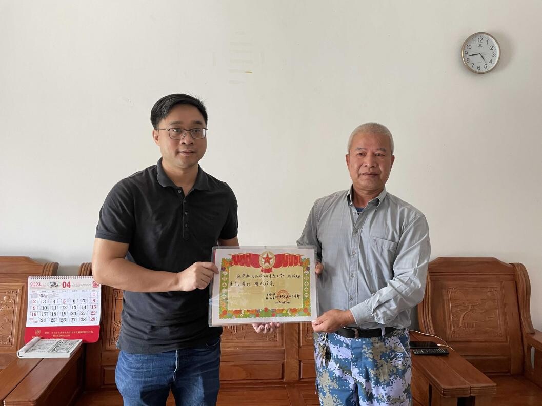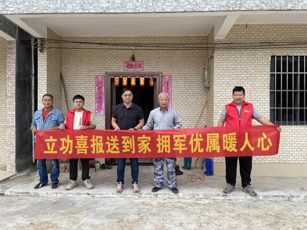 4月13日,赤水鎮(zhèn)人民武裝部、鎮(zhèn)退役軍人服務(wù)站工作人員走訪慰問(wèn)高山村現(xiàn)役軍人張華新家屬,并送上“三等功”喜報(bào),對(duì)張華新在部隊(duì)里取得的優(yōu)異成績(jī)表示祝賀。
