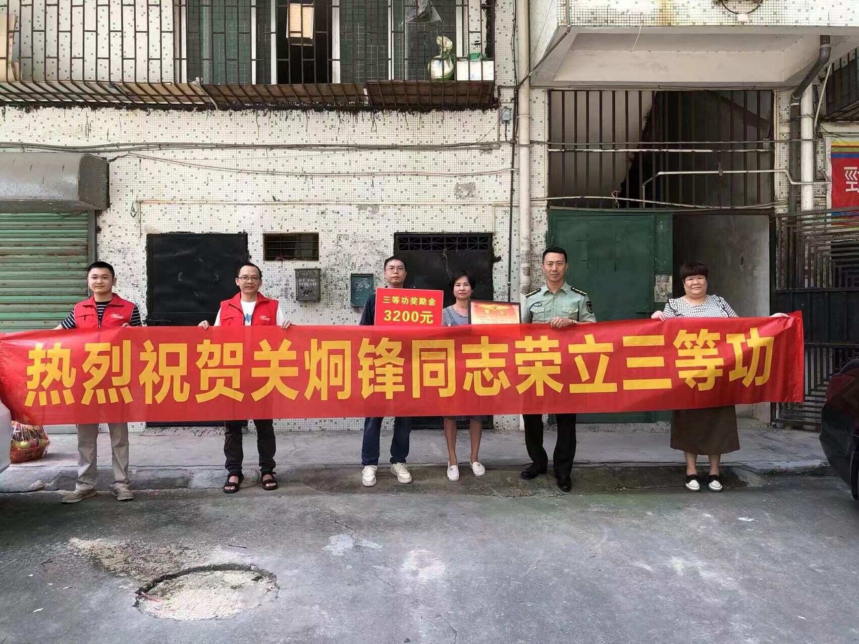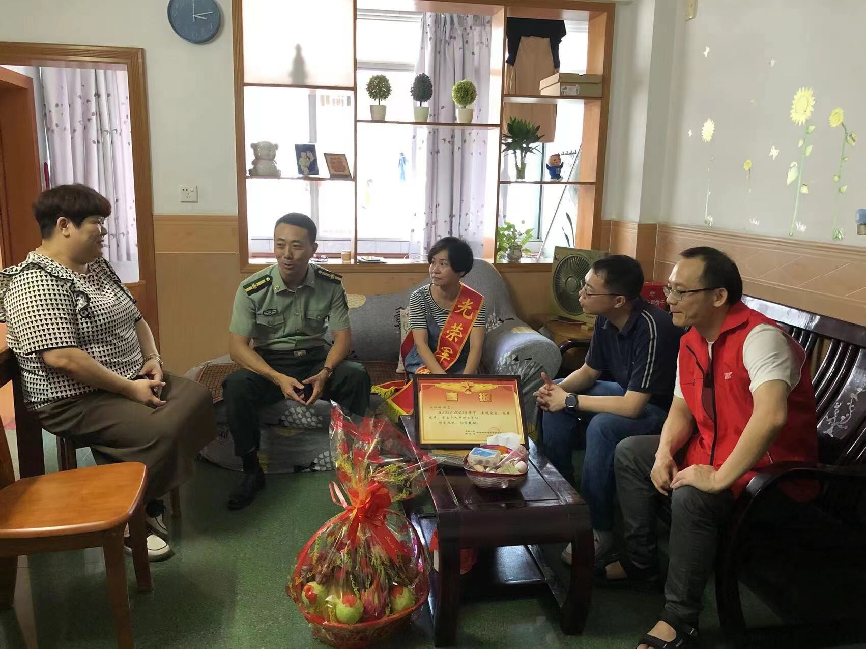 為進(jìn)一步弘揚(yáng)擁軍優(yōu)屬的光榮傳統(tǒng),營(yíng)造“一人參軍,全家光榮”的氛圍,“八一”建軍節(jié)前夕,市退役軍人事務(wù)局聯(lián)合三埠街道退役軍人服務(wù)站到榮立三等功的三埠籍現(xiàn)役軍人關(guān)炯鋒家中給其家人送上喜報(bào)和慰問金。