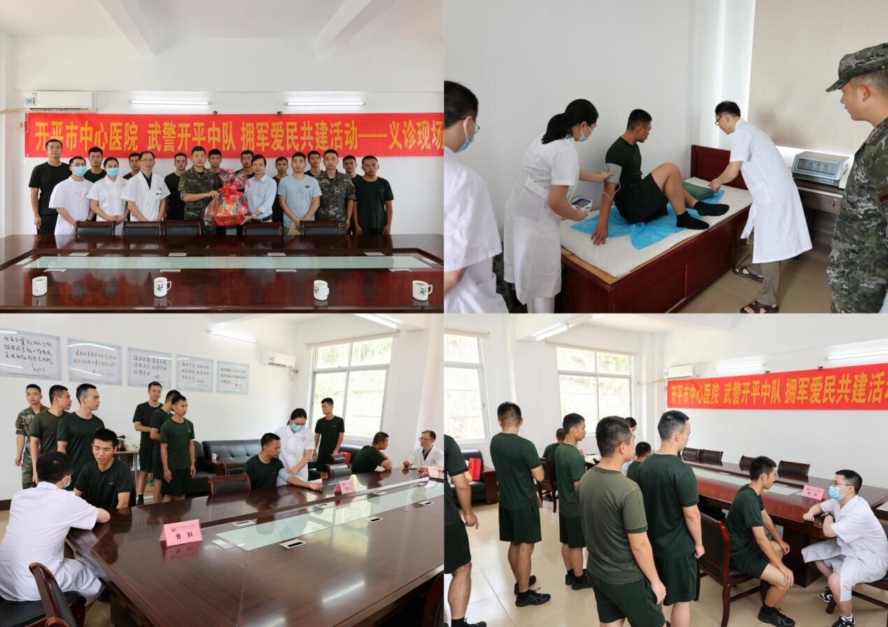 開平市中心醫(yī)院走進武警開平中隊開展擁軍愛民共建義診活動,來自骨科、內(nèi)科等科室的醫(yī)療專家現(xiàn)場坐診,為部隊官兵進行全面身體健康檢查及健康指導。