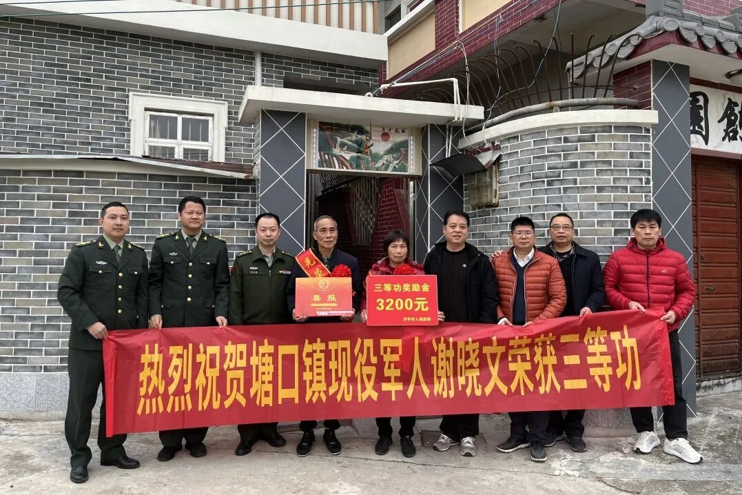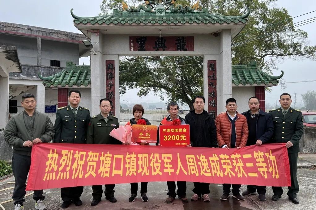 為弘揚擁軍優(yōu)屬、擁政愛民的光榮傳統(tǒng),激發(fā)部隊士兵安心服役、建功軍營、獻(xiàn)身國防的政治熱情,近日,開平市退役軍人事務(wù)局、市人民武裝部和塘口鎮(zhèn)一行組成慰問團(tuán),分別到潭溪鳳社村和升平龍興村,為榮立三等功的現(xiàn)役軍人謝曉文和周逸成的家屬送去喜報。