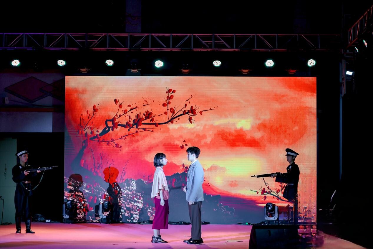 開平市百合中學(xué)學(xué)生們以演促學(xué),在演繹話劇《木棉花開》