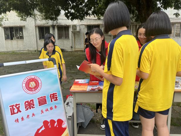 此外,活動(dòng)還邀請(qǐng)了僑都星火志愿服務(wù)隊(duì)一同進(jìn)校園,向?qū)W生們宣傳發(fā)放《中華人民共和國(guó)退役軍人保障法》、《退役軍人優(yōu)待證》、《征兵宣傳手冊(cè)》等資料,促進(jìn)學(xué)生對(duì)國(guó)防事業(yè)及退役軍人更全面的認(rèn)識(shí)。在活動(dòng)現(xiàn)場(chǎng),學(xué)生們認(rèn)真閱讀資料,不時(shí)提出疑問(wèn),而志愿隊(duì)員則一一耐心解答,積極互動(dòng),濃厚的愛(ài)國(guó)教育氛圍讓紅色文化、紅色基因的種子植根校園。