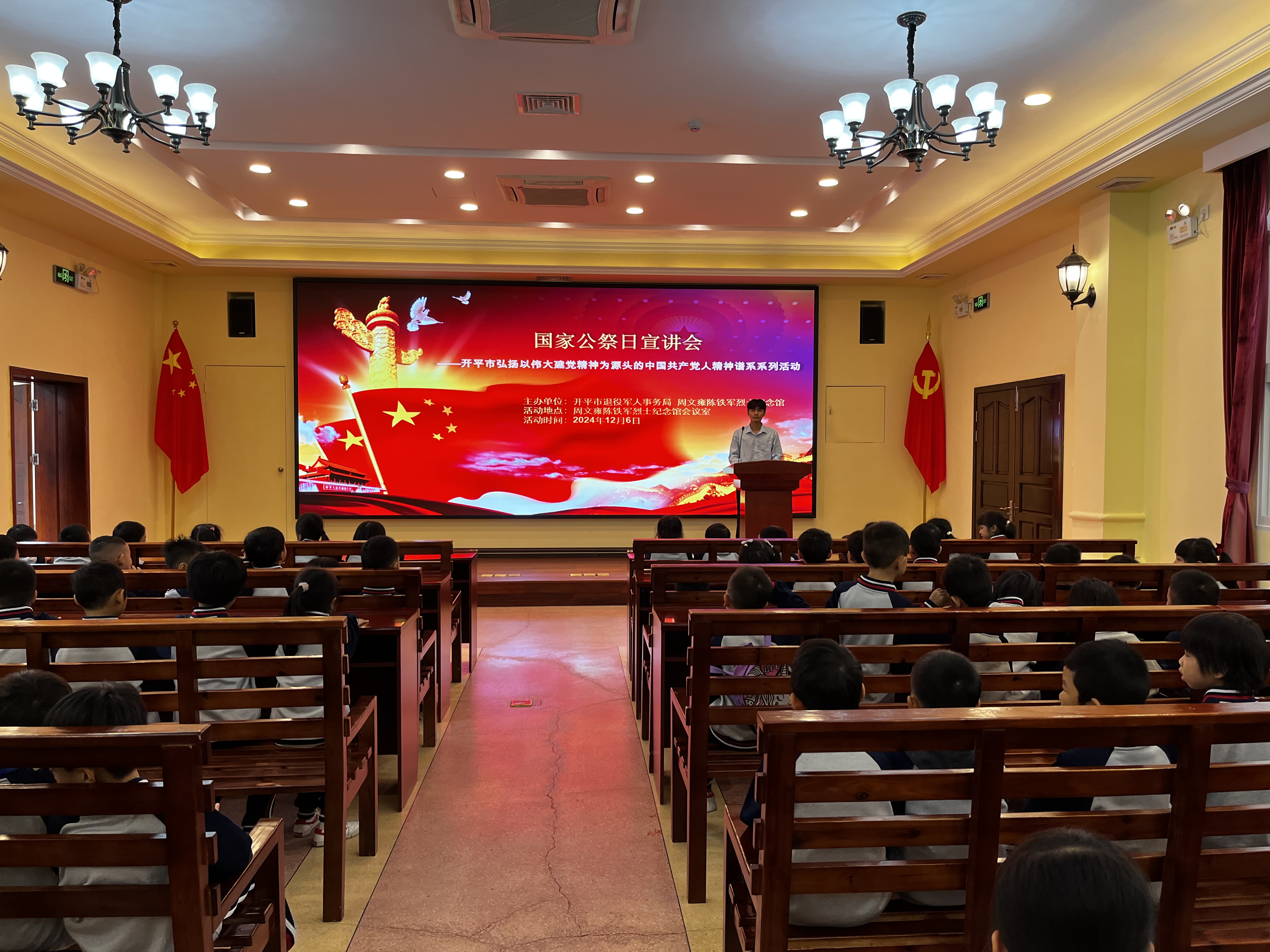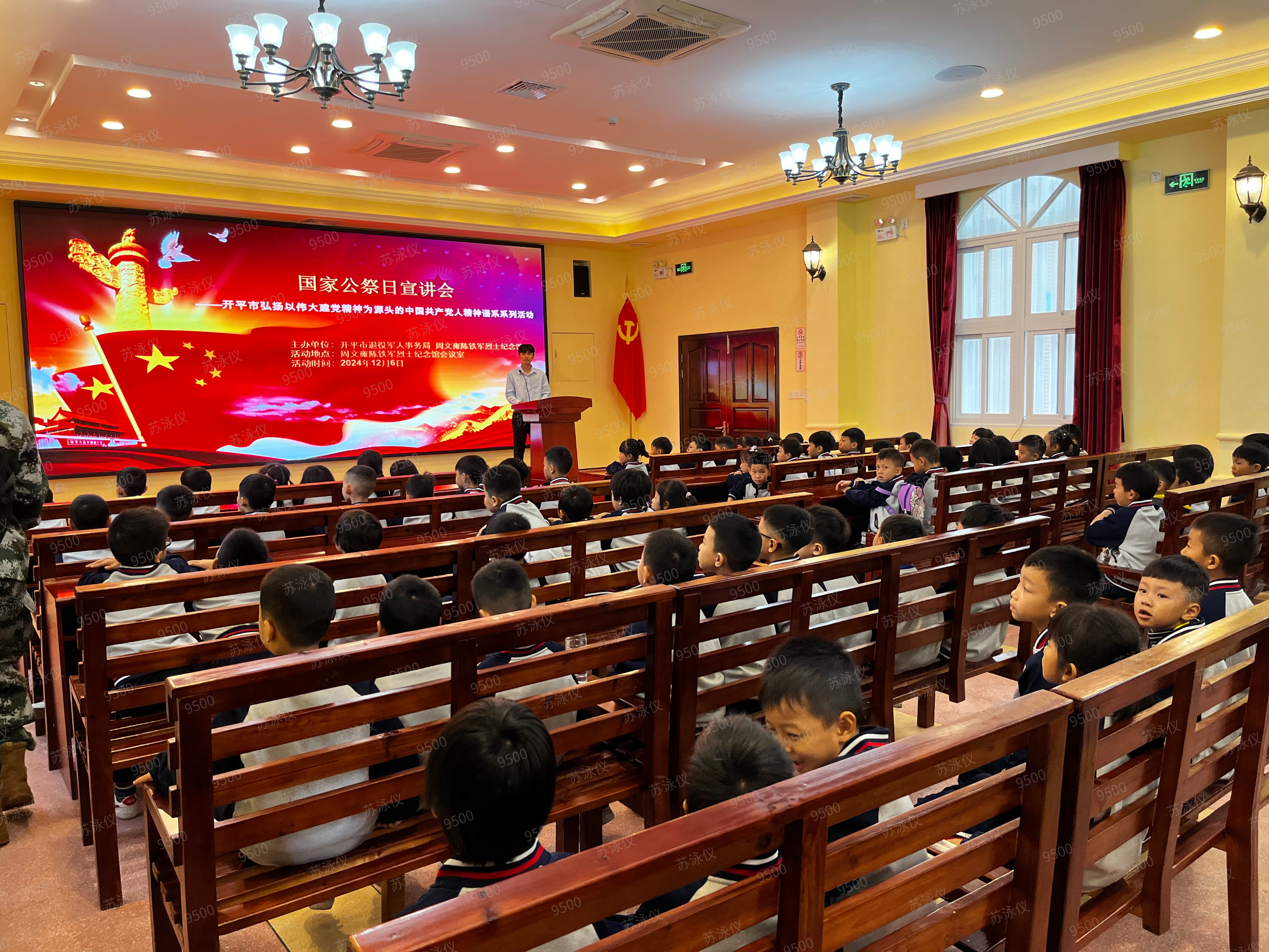 近日,為紀(jì)念國家公祭日,開平市退役軍人事務(wù)局在周文雍陳鐵軍烈士紀(jì)念館為小學(xué)生們舉辦了一場意義深遠(yuǎn)的宣講會,旨在傳承紅色基因,激發(fā)孩子們的愛國情懷與民族責(zé)任感。此次活動得到了學(xué)校師生的積極響應(yīng),共有120名小學(xué)生參與其中。