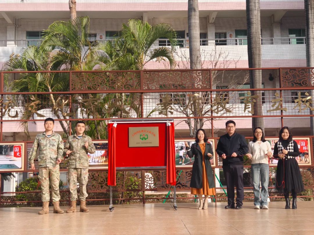 在激昂的國歌聲中,揭牌儀式正式拉開帷幕。學校領(lǐng)導與部隊軍官們?yōu)閿y手創(chuàng)建的“全國國防教育示范學?!迸曝医议_紅綢,嶄新的牌匾在陽光照耀下熠熠生輝。這不僅是一份榮譽,更是一份責任與使命的交接,標志著譚宏帙紀念小學在國防教育領(lǐng)域開啟了新的篇章。