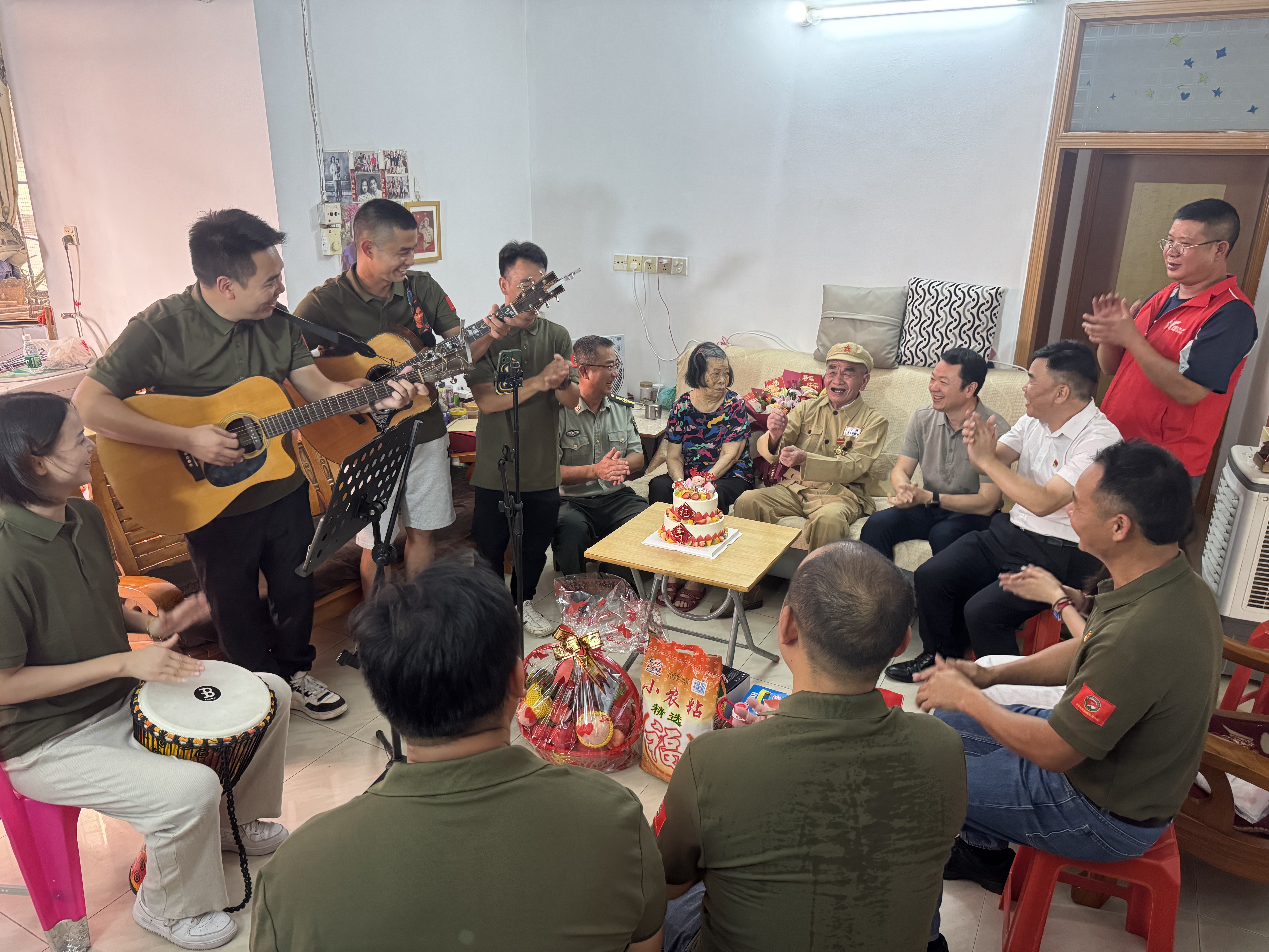 切蛋糕時,妻子和譚藹云一起握住刀叉,在生日歌聲中切下蛋糕?!白T伯,您看現(xiàn)在街道干凈整潔,孩子們在樓下公園里嬉笑打鬧,這都是您那輩人用命換來的?!鄙涨T,開平市退役軍人事務(wù)局局長張澤康動情地向老人說,“我們這代軍人,就得像您這樣,把‘守家衛(wèi)國’四個字刻在心里。”老人點點頭,忽然提高聲音:“國家好,比啥都強!”