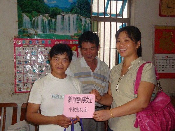在中秋節(jié)即將來臨之際,2011年9月5日上午,市文廣新局紀(jì)檢組長張雪惠、黨組成員梁艷萍與辦公室、駐村干部一行走訪慰問該局掛鉤幫扶的馬岡鎮(zhèn)紅豐村委會梁翠霞、梁偉能兩戶貧困戶,向他們送上中秋月餅,并了解他們的生產(chǎn)、生活情況。同時,受熱心人士、澳門鄉(xiāng)親鄺英女士的委托,代表她向貧困戶送上中秋慰問金,預(yù)祝他們過一個歡樂的中秋佳節(jié)。慰問梁翠霞家庭