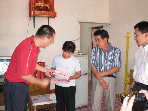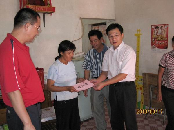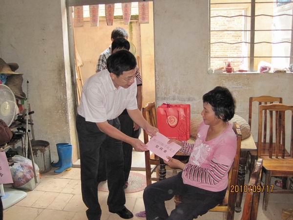 2010年9月17日上午,市文廣新局局長譚偉強、紀(jì)檢組長張雪惠和辦公室主任梁艷萍,前往掛鉤幫扶的馬岡鎮(zhèn)紅豐村委會,了解“規(guī)劃到村責(zé)任到人”扶貧開發(fā)工作開展情況,并走訪慰問了3戶貧困戶,給他們送去慰問物品。