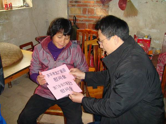 在2011年新春佳節(jié)即將來臨之際,1月14日上午,市文廣新局譚偉強(qiáng)局長(zhǎng)親自帶領(lǐng)局班子成員和部分干部、文化館干部走訪慰問掛鉤幫扶的馬岡鎮(zhèn)紅豐村委會(huì)掛鉤扶貧2戶貧困戶,向貧困戶送上慰問金及御寒棉被。澳門鄉(xiāng)親鄺英女士也委托我局領(lǐng)導(dǎo)向困難戶送上節(jié)日慰問金。
