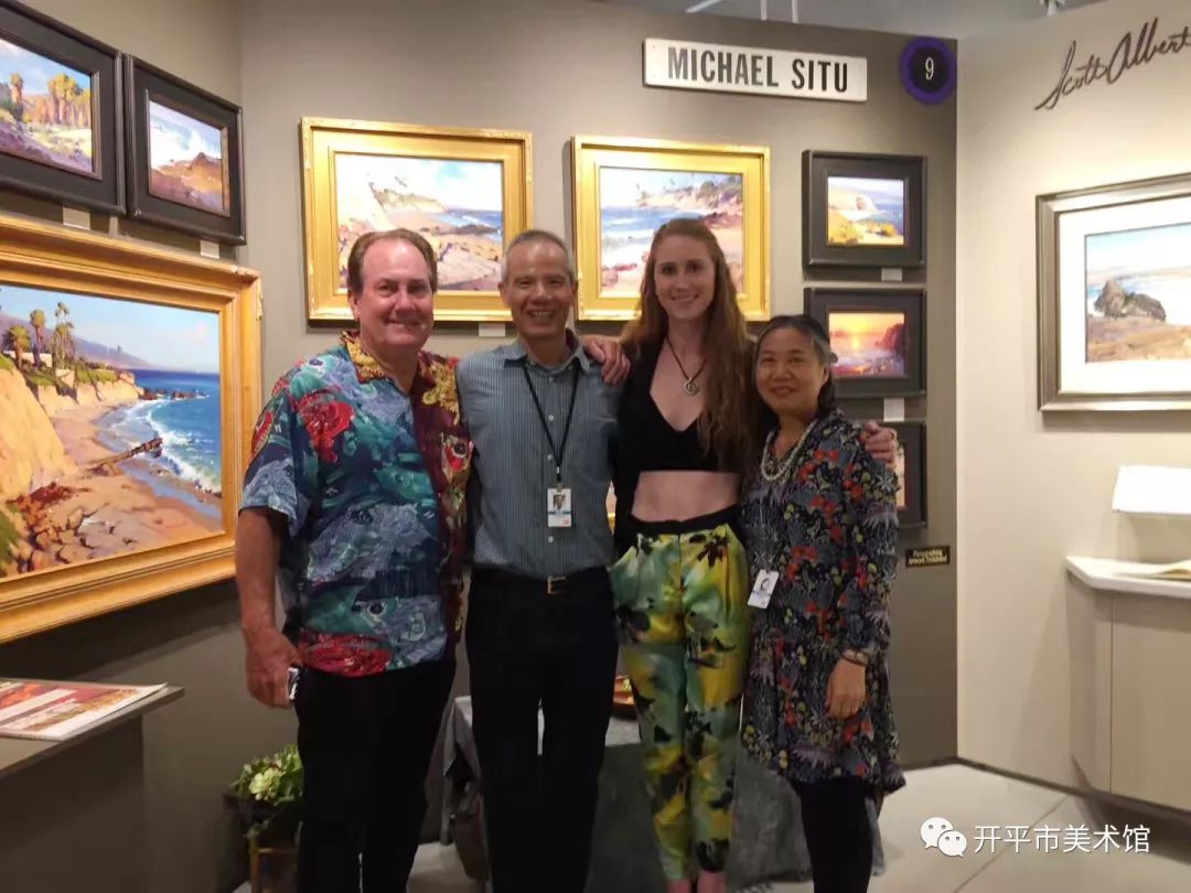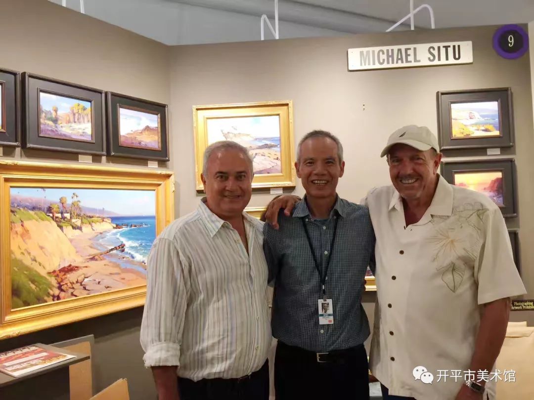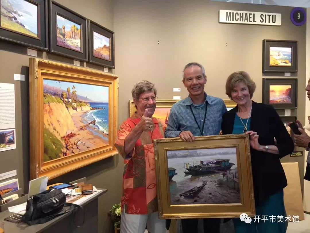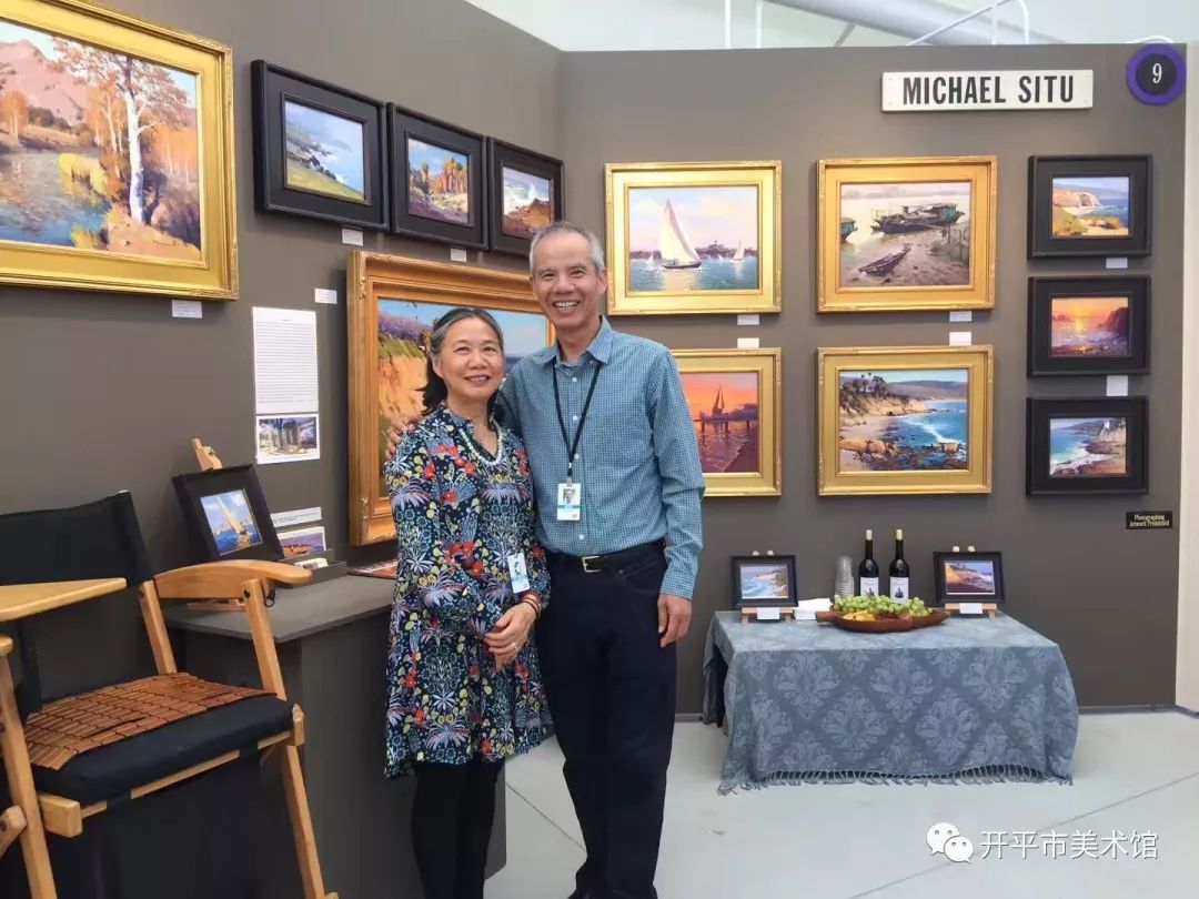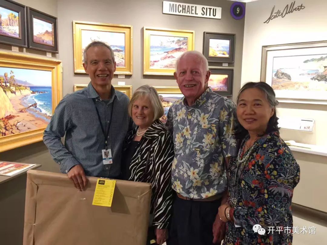 祝賀司徒維能老師的作品成功入展2018“拉古納藝術(shù)節(jié)”并被藏家收藏。這是司徒老師連續(xù)第17年被評(píng)入選此藝術(shù)盛會(huì)。 司徒維能, 1956年出生于廣東省開平市赤坎。1984年在廣州美術(shù)學(xué)院完成他的美術(shù)教育。出國之前曾在開平粵劇團(tuán)任舞臺(tái)美術(shù)設(shè)計(jì),開平長沙師范學(xué)校任美術(shù)教師。1989年移居美國洛杉磯,現(xiàn)居住在南加州。美國油畫家協(xié)會(huì)高級(jí)藝術(shù)家會(huì)員、美國印象派畫家協(xié)會(huì)高級(jí)藝術(shù)家會(huì)員、加州藝術(shù)家俱樂部高級(jí)藝術(shù)家會(huì)員、拉古納寫生畫家協(xié)會(huì)高級(jí)藝術(shù)家會(huì)員。司徒維能的繪畫風(fēng)格在傳統(tǒng)與寫實(shí)的美國油畫風(fēng)景寫生界有一定的影響和地位。加州印象派的代表畫家之一。他的作品經(jīng)常入選參加美國的重要藝術(shù)展覽和比賽,屢屢獲獎(jiǎng)。 司徒維能老師和小雁老師在作品海報(bào)前留影 拉古納海灘是南加州著名的海濱度假城市,也是有名的藝術(shù)家聚集地。該海灘有四個(gè)聞名遐邇的年度藝術(shù)節(jié):木屑藝術(shù)節(jié)、藝術(shù)盛會(huì)、大師盛會(huì)以及藝術(shù)展。其中,拉古納海灘藝術(shù)節(jié)創(chuàng)立于1932年,每年暑假舉辦。每屆藝術(shù)節(jié)都會(huì)贊助藝術(shù)教育活動(dòng)、藝術(shù)展覽,并為當(dāng)?shù)氐母咧猩峁┧囆g(shù)獎(jiǎng)學(xué)金,并通過其基金會(huì)為當(dāng)?shù)胤菭I利性藝術(shù)組織提供資助。 2018年7月5日,拉古納海灘藝術(shù)節(jié)開幕,迎來了140位藝術(shù)家和他們的優(yōu)秀作品。
