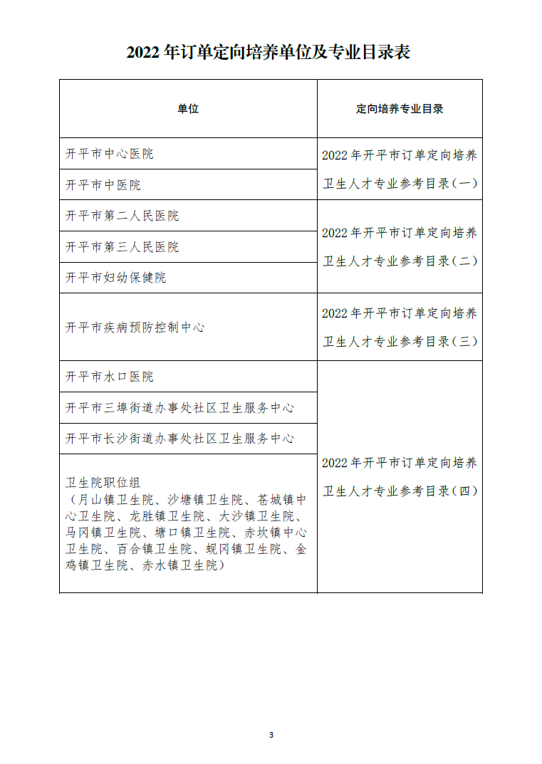 【下載】2022年開平市訂單定向培養(yǎng)衛(wèi)生人才計(jì)劃50名.docx 青春無悔 醫(yī)路有你 讀書每年補(bǔ)助兩萬還保編制,畢業(yè)直接到我市醫(yī)療機(jī)構(gòu)工作! --2022年開平市訂單定向培養(yǎng)衛(wèi)生人才計(jì)劃50名! 有這樣一群人,他們每天都在救死扶傷;有這樣一群人,他們每天都在與時(shí)間賽跑;有這樣一群人,他們每天都在迎接新的生命。他們守護(hù)的是人民的健康,追求的是患者滿意,堅(jiān)持的是醫(yī)者仁心。你是否也想成為他們的一員,成為開平人民的健康守門人?請(qǐng)馬上閱讀開平市訂單定向培養(yǎng)衛(wèi)生人才計(jì)劃! 一、對(duì)象:參加2022年全國普通高等學(xué)校招生統(tǒng)一考試,報(bào)考專業(yè)符合我市醫(yī)療衛(wèi)生機(jī)構(gòu)緊缺崗位醫(yī)學(xué)類專業(yè)(具體專業(yè)范圍由市衛(wèi)生健康部門、市人才辦每年根據(jù)全市醫(yī)療機(jī)構(gòu)對(duì)衛(wèi)生專業(yè)技術(shù)人員實(shí)際需求確定,詳見《2022年訂單定向培養(yǎng)單位及專業(yè)目錄表》)要求,被成功錄取為本科(含本科、本碩連讀、本碩博連讀),且志愿在開平市從事醫(yī)療衛(wèi)生工作的開平市戶籍,在廣東省參加全國普通高等學(xué)校招生統(tǒng)一考試的考生;江門市戶籍或非江門市戶籍,但在江門市參加全國普通高等學(xué)校招生統(tǒng)一考試的考生。每年定向培養(yǎng)人數(shù)50人。 二、主要權(quán)利: 1.補(bǔ)助標(biāo)準(zhǔn):20000元/年/人(補(bǔ)助年限以大學(xué)錄取通知書上錄取專業(yè)正常學(xué)習(xí)時(shí)限為準(zhǔn),每學(xué)年期初發(fā)放到定向培養(yǎng)生銀行賬戶)。 2.按照規(guī)定時(shí)間畢業(yè),由市衛(wèi)生健康部門按照競(jìng)爭(zhēng)擇優(yōu)的原則經(jīng)相關(guān)程序錄用到醫(yī)療衛(wèi)生機(jī)構(gòu)工作。 3.定向培養(yǎng)醫(yī)學(xué)生正常畢業(yè)后可以選擇更高學(xué)歷繼續(xù)學(xué)習(xí)(繼續(xù)學(xué)習(xí)期間不予補(bǔ)助),完成更高學(xué)歷學(xué)習(xí)后按協(xié)議履行義務(wù)。 三、主要義務(wù): 1.定向培養(yǎng)醫(yī)學(xué)生在獲取入學(xué)通知書后,須簽署定向培養(yǎng)衛(wèi)生人才協(xié)議書,承諾畢業(yè)后到開平市有關(guān)醫(yī)療衛(wèi)生機(jī)構(gòu)服務(wù)6年以上。 2.定向培養(yǎng)醫(yī)學(xué)生畢業(yè)后,按有關(guān)規(guī)定參加相關(guān)培訓(xùn),并完成對(duì)應(yīng)專業(yè)醫(yī)學(xué)從業(yè)人員資格考試。 3.定向培養(yǎng)醫(yī)學(xué)生畢業(yè)后未按協(xié)議到醫(yī)療衛(wèi)生機(jī)構(gòu)工作,或出現(xiàn)其他違約事項(xiàng),按規(guī)定退還已享受的補(bǔ)助費(fèi)用并繳納違約金。同時(shí)將違約事實(shí)記入個(gè)人誠信檔案。 “健康所系,性命相托”,他們堅(jiān)持人民至上、生命至上,堅(jiān)決守護(hù)全市人民生命安全和身體健康,用他們的負(fù)重前行換來我們?nèi)腥嗣竦臍q月靜好。他們的堅(jiān)持需要你們的接力,家鄉(xiāng)人民的健康需要你們的守護(hù),請(qǐng)報(bào)考醫(yī)學(xué)專業(yè)吧,與我們簽約,“醫(yī)”起向未來! (聯(lián)系人:開平市衛(wèi)生健康局人事股司徒小姐,聯(lián)系電話:2252002、2251833,辦公地點(diǎn):開平市長沙街道東興大道人和東路12號(hào)5幢) 開平市衛(wèi)生健康局 2022年6月9日