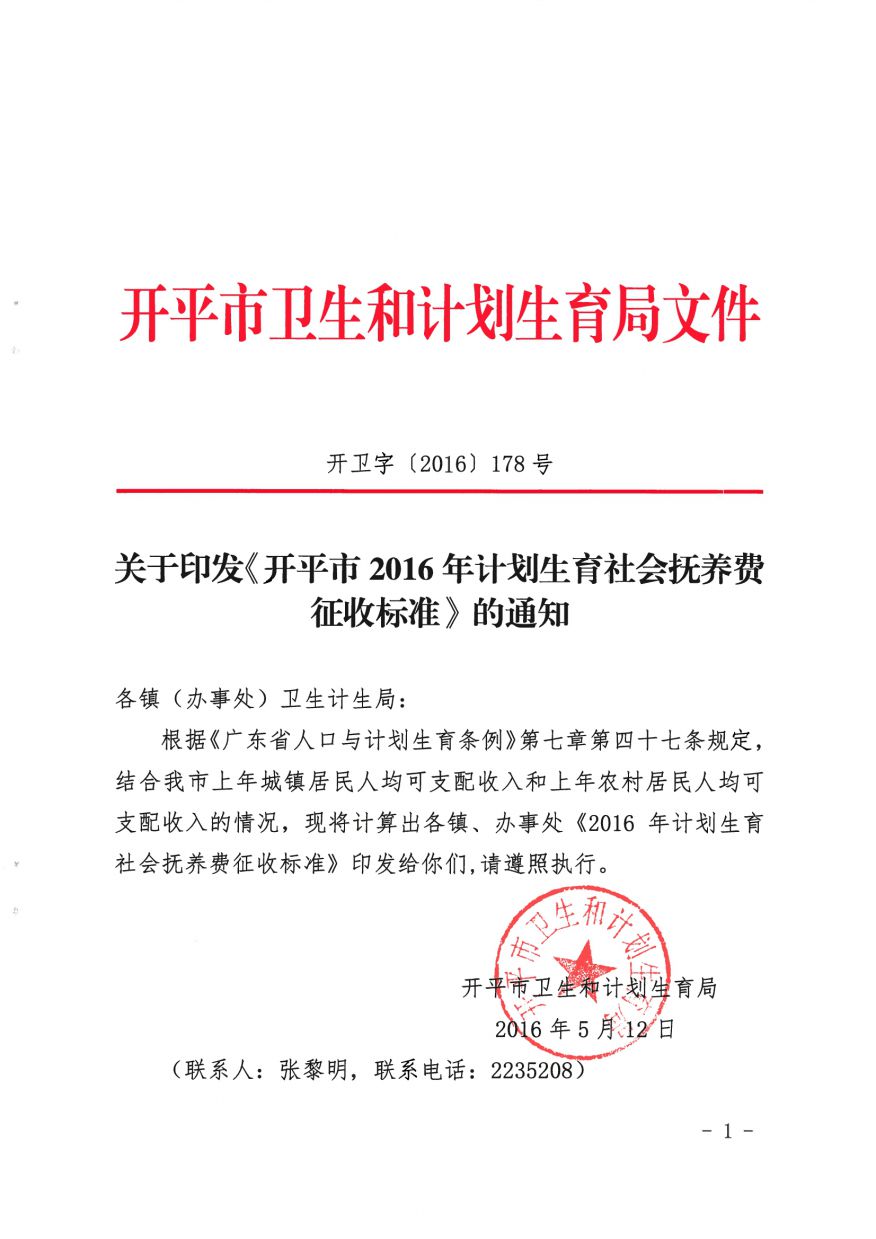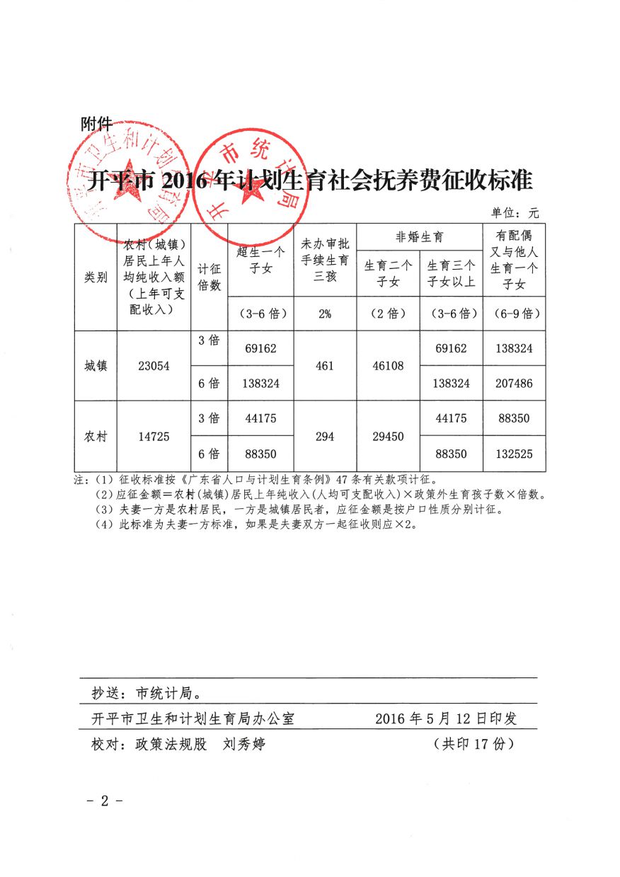 關(guān)于印發(fā)《開(kāi)平市2016年計(jì)劃生育社會(huì)撫養(yǎng)費(fèi)征收標(biāo)準(zhǔn)》的通知(開(kāi)衛(wèi)字[2016]178號(hào))