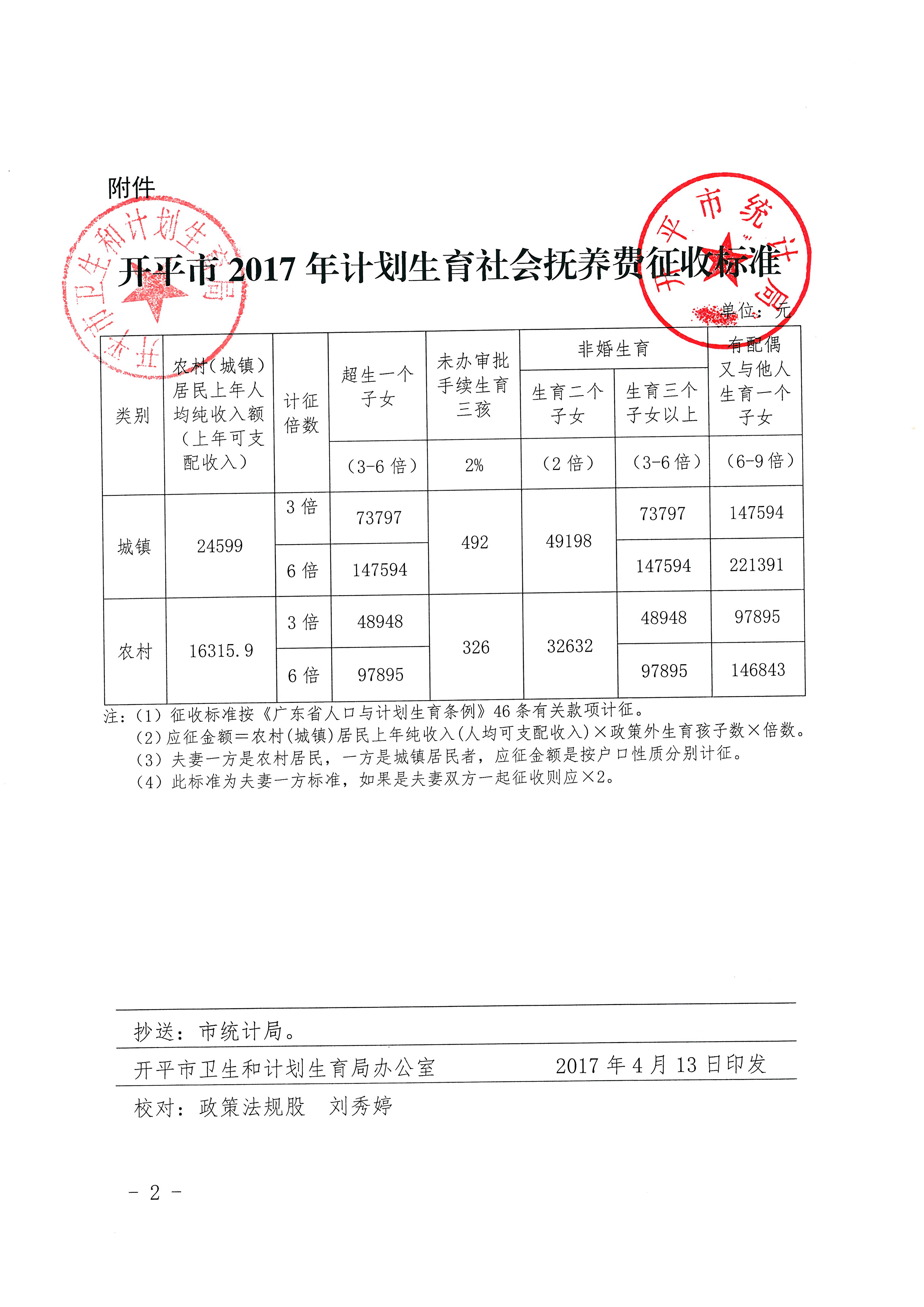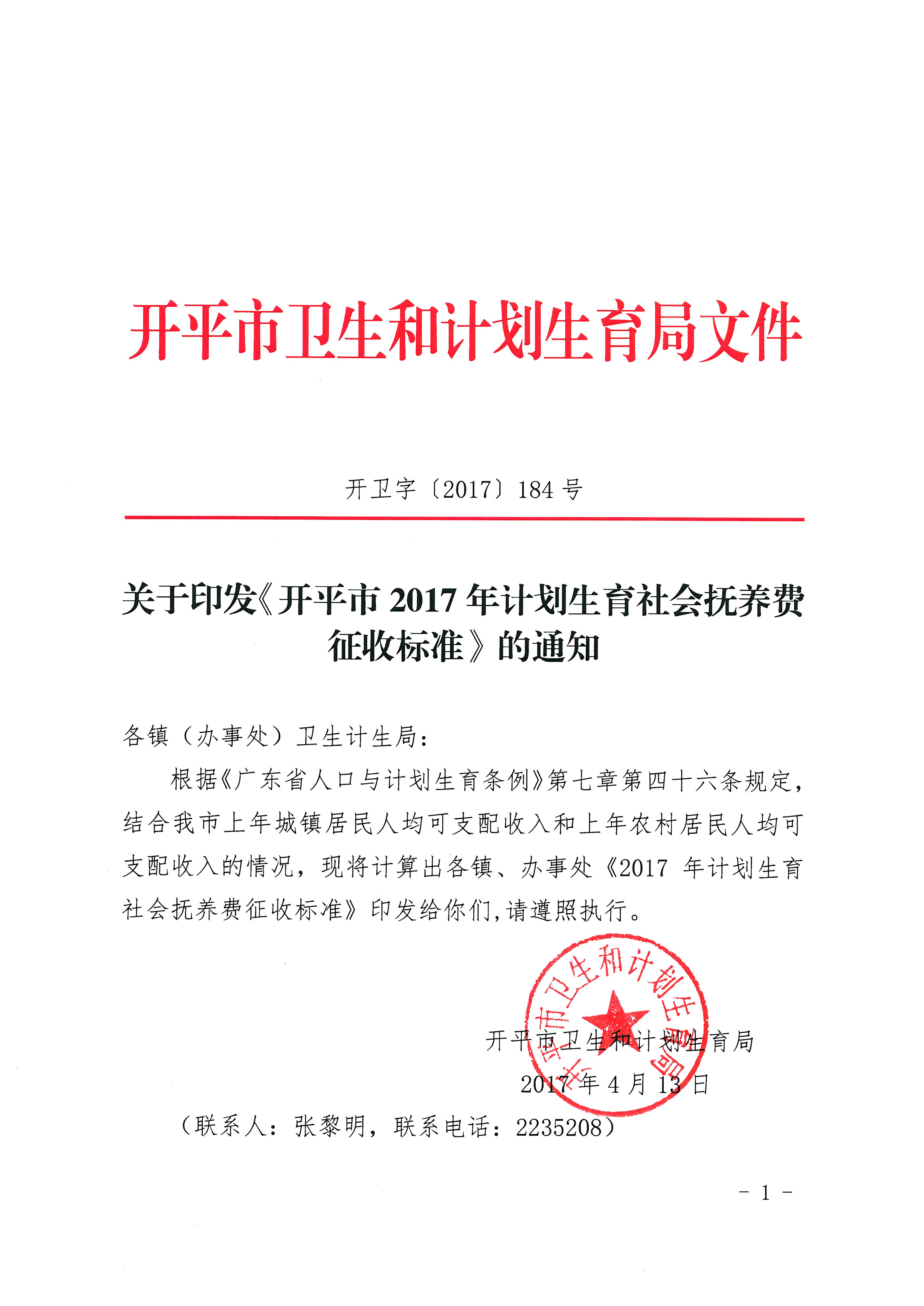 關(guān)于印發(fā)《開平市2017年計劃生育社會撫養(yǎng)費征收標(biāo)準(zhǔn)》的通知(開衛(wèi)字[2017]185號)