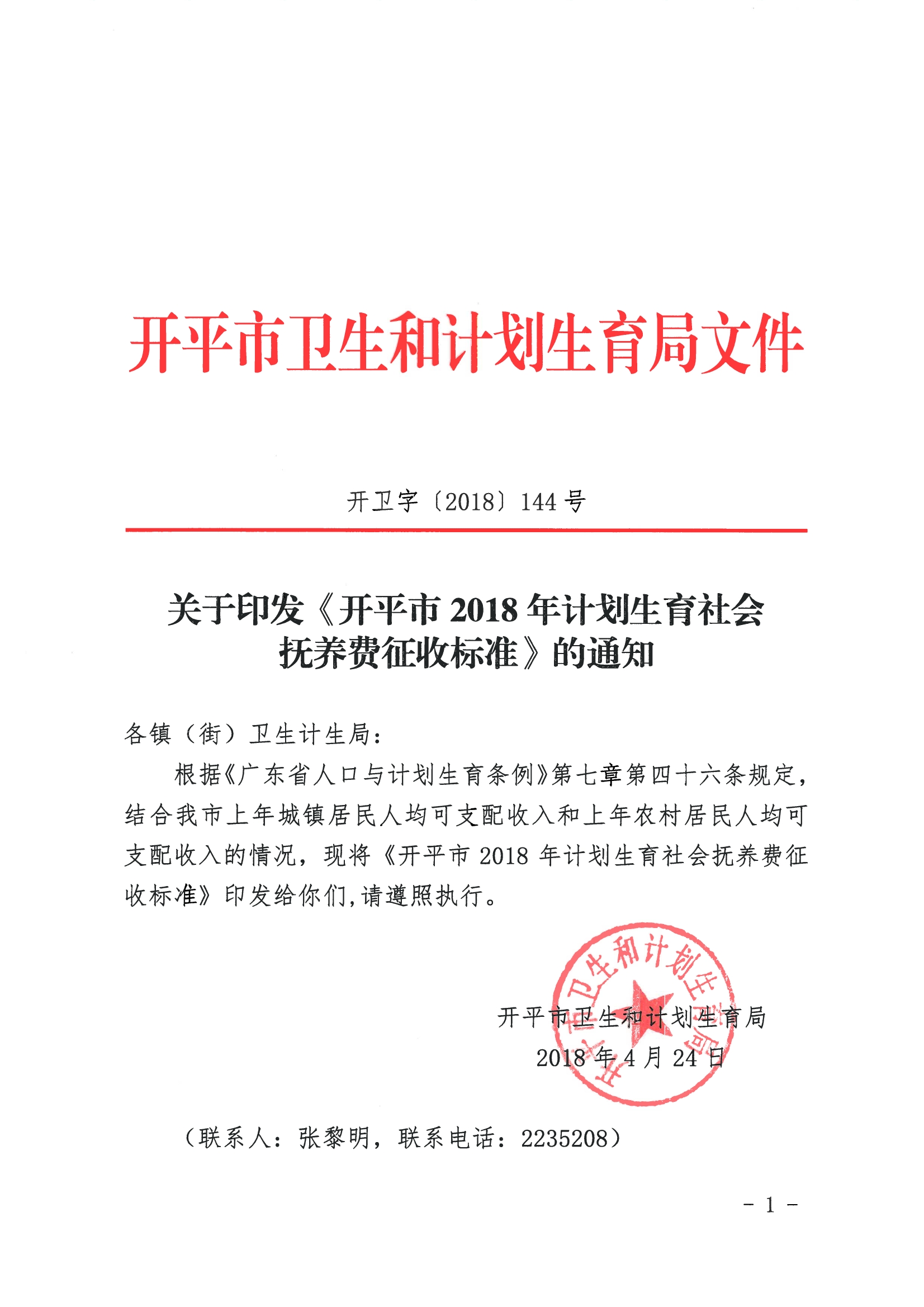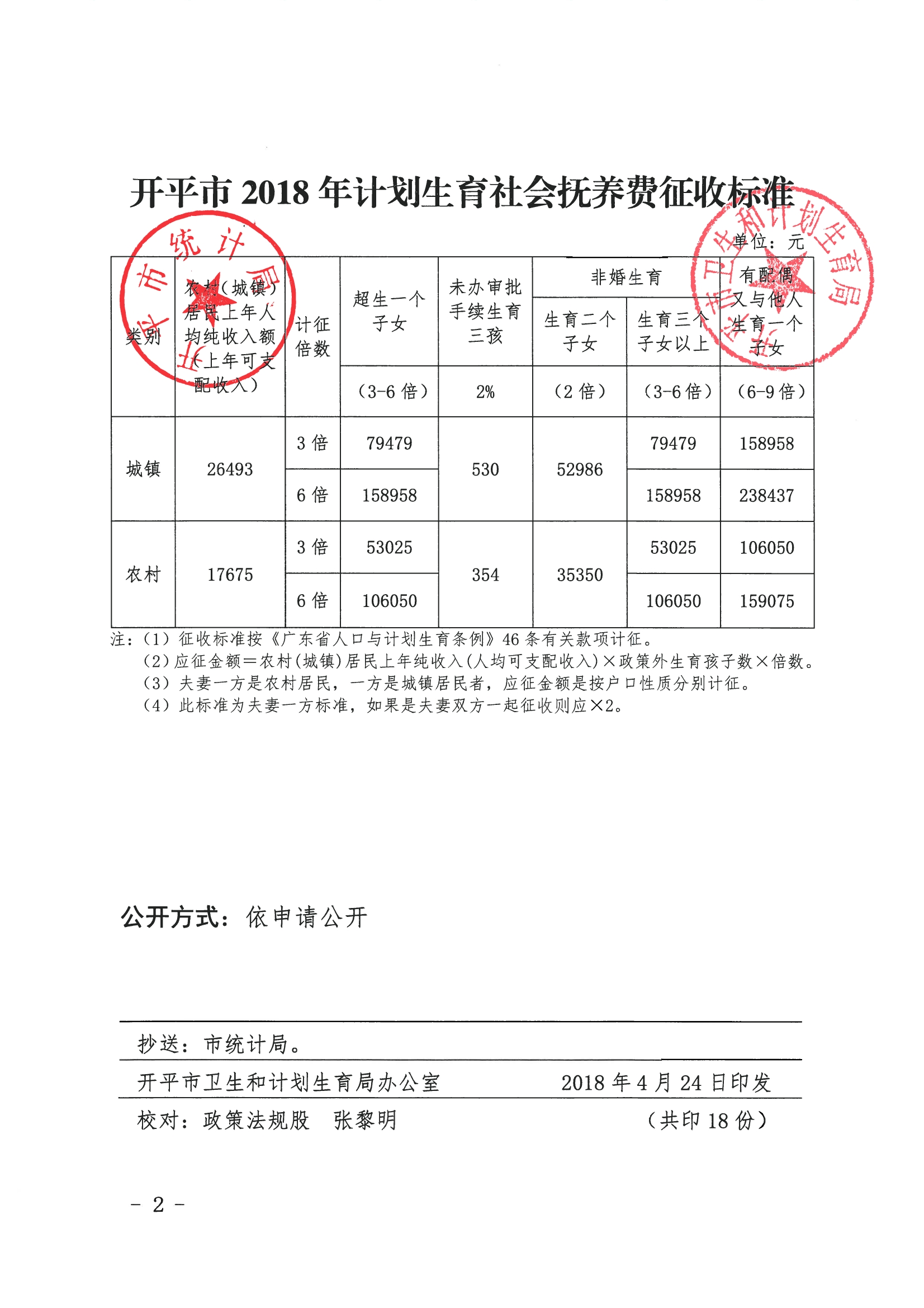 關(guān)于印發(fā)《開平市2018年計劃生育社會撫養(yǎng)費征收標準》的通知(開衛(wèi)字[2018]144號)