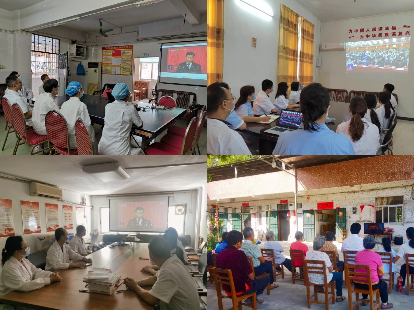 10月16日,市衛(wèi)生健康局領(lǐng)導(dǎo)班子、機(jī)關(guān)黨員干部集中收看中國(guó)共產(chǎn)黨第二十次全國(guó)代表大會(huì)開幕會(huì)直播。同時(shí),全系統(tǒng)各直屬單位全體干部職工在10個(gè)分會(huì)場(chǎng),或通過(guò)廣播、電視、網(wǎng)絡(luò)等方式進(jìn)行收聽收看,認(rèn)真學(xué)習(xí)、深刻領(lǐng)會(huì)習(xí)近平總書記重要講話精神。 黨的二十大是在邁上全面建設(shè)社會(huì)主義現(xiàn)代化國(guó)家新征程、向第二個(gè)百年奮斗目標(biāo)進(jìn)軍的關(guān)鍵時(shí)刻召開的一次十分重要的大會(huì)??倳浀膱?bào)告主題鮮明、思想深邃,內(nèi)涵豐富、催人奮進(jìn)。面對(duì)使命任務(wù),開平市衛(wèi)健系統(tǒng)有信心、有決心、有能力戰(zhàn)勝一切艱難險(xiǎn)阻,打造科學(xué)高效疫情防治體系,提升醫(yī)療衛(wèi)生服務(wù)大格局,構(gòu)建更加強(qiáng)大的公共衛(wèi)生體系,全面發(fā)展覆蓋全生命周期的健康服務(wù)。以扎實(shí)過(guò)硬的作風(fēng)確保黨的二十大精神落地生根,以堅(jiān)持不懈的斗爭(zhēng)精神打開衛(wèi)生健康事業(yè)發(fā)展新天地。 開平市疾病預(yù)防控制中心: 市疾病預(yù)防控制中心領(lǐng)導(dǎo)班子、各股室負(fù)責(zé)人集中收看收聽直播后紛紛表示,要始終堅(jiān)持人民至上、生命至上,時(shí)刻繃緊疫情防控這根弦,堅(jiān)持“外防輸入、內(nèi)防反彈”總策略和“動(dòng)態(tài)清零”總方針不動(dòng)搖,慎終如始抓好疾控各項(xiàng)工作,為人民群眾健康保駕護(hù)航,推動(dòng)疾控事業(yè)高質(zhì)量發(fā)展。 開平市衛(wèi)生監(jiān)督所: 開平市衛(wèi)生監(jiān)督組織全體黨員干部和退休干部職工收看開幕會(huì)。大家紛紛表示要深入學(xué)習(xí)貫徹黨的二十大精神,把黨的二十大的決策部署轉(zhuǎn)化為推動(dòng)衛(wèi)生監(jiān)督事業(yè)發(fā)展的具體措施,不斷開創(chuàng)衛(wèi)生監(jiān)督工作新局面。 開平市中心醫(yī)院: 開平市中心醫(yī)院組織全院黨員干部群眾積極通過(guò)廣播、電視、網(wǎng)絡(luò)收聽收看大會(huì)盛況,聆聽報(bào)告。習(xí)近平總書記的報(bào)告振奮人心,更加堅(jiān)定了全員干部職工做好三甲醫(yī)院復(fù)評(píng)工作的信心和決心,黨員干部表示一定乘勢(shì)而上、砥礪前行,以更高的醫(yī)療水平、更好的醫(yī)療質(zhì)量服務(wù)經(jīng)濟(jì)社會(huì)的發(fā)展,為人民群眾提供更好的健康保障。 開平市中醫(yī)院: 市中醫(yī)院組織黨員干部代表集中收看大會(huì)直播,干部職工表示,在新征程上踔厲奮發(fā)、勇毅前行,為推進(jìn)溫暖、美麗、品質(zhì)醫(yī)院建設(shè)而團(tuán)結(jié)奮斗。 開平市第二人民醫(yī)院: 市二院領(lǐng)導(dǎo)班子、中層干部和黨員代表集中收聽收看大會(huì)直播。會(huì)后與會(huì)人員紛紛表示,將加快建設(shè)高水平綜合性醫(yī)院步伐,推動(dòng)醫(yī)院實(shí)現(xiàn)新一輪高質(zhì)量發(fā)展,更好地滿足人民群眾對(duì)優(yōu)質(zhì)便捷醫(yī)療服務(wù)的需求。 開平市婦幼保健院: 市婦幼保健院領(lǐng)導(dǎo)班子、部分黨員干部集中收看直播后紛紛表示,將結(jié)合自身工作,以黨的二十大精神為指引,以新的精神狀態(tài)和奮斗姿態(tài)投身婦幼工作,扎實(shí)推進(jìn)醫(yī)院高質(zhì)量發(fā)展。 開平市第三人民醫(yī)院、結(jié)核病防治所、皮膚病防治站、玲瓏醫(yī)院: 市第三人民醫(yī)院、結(jié)核病防治所、皮膚病防治站、玲瓏醫(yī)院組織班子成員、黨員干部觀看直播后表示,要深入學(xué)習(xí)習(xí)近平總書記重要講話精神,并把學(xué)習(xí)成效轉(zhuǎn)化為做好醫(yī)療衛(wèi)生事業(yè)的內(nèi)在動(dòng)力,以實(shí)干實(shí)效落實(shí)黨的二十大精神,推動(dòng)專病醫(yī)院診療水平邁向新臺(tái)階。