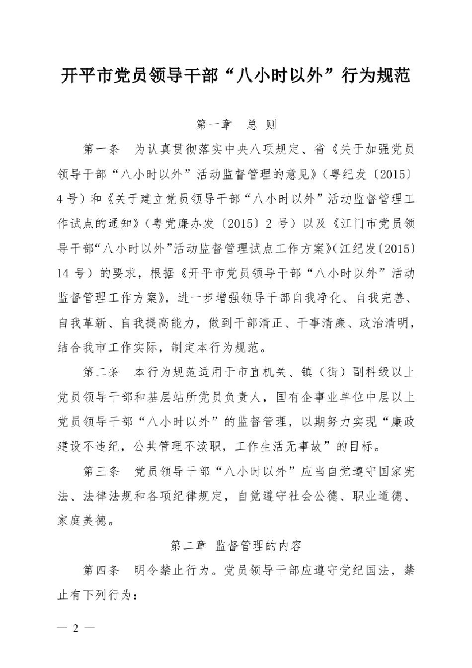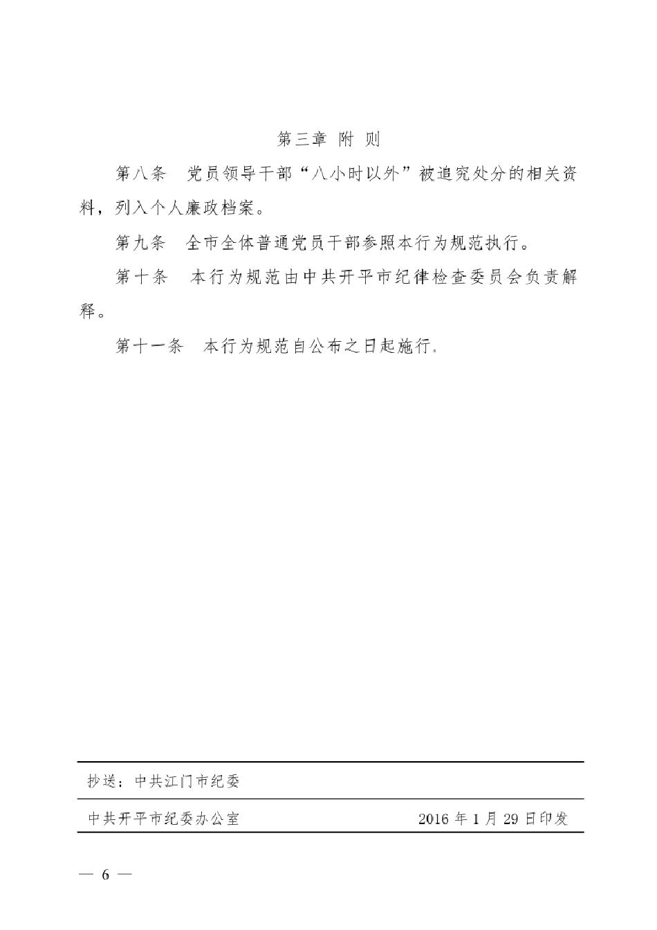 【工作制度】開紀(jì)〔2016〕2號(hào) 關(guān)于印發(fā)《開平市黨員領(lǐng)導(dǎo)干部“八小時(shí)以外”行為規(guī)范》的通知