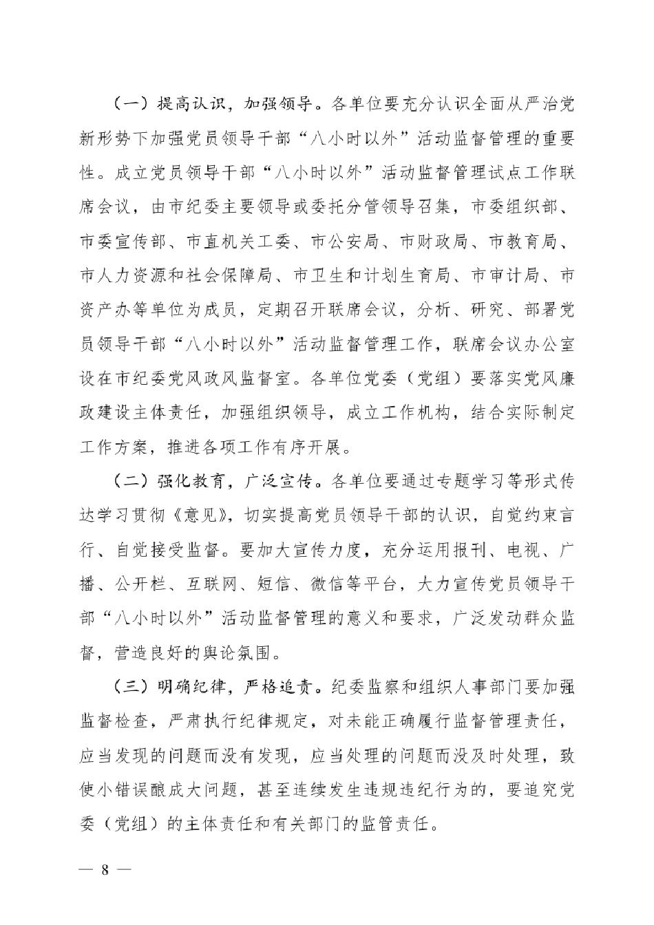 【工作文件】關(guān)于開展黨員領(lǐng)導(dǎo)干部“八小時(shí)以外”監(jiān)督管理試點(diǎn)的通知(江黨廉辦函〔2015〕3號(hào))