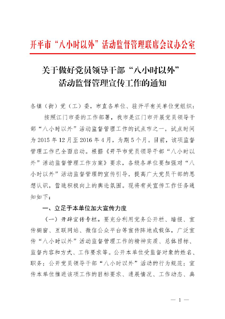 【工作文件】關(guān)于做好黨員領(lǐng)導(dǎo)干部“八小時(shí)以外”活動(dòng)監(jiān)督管理宣傳工作的通知